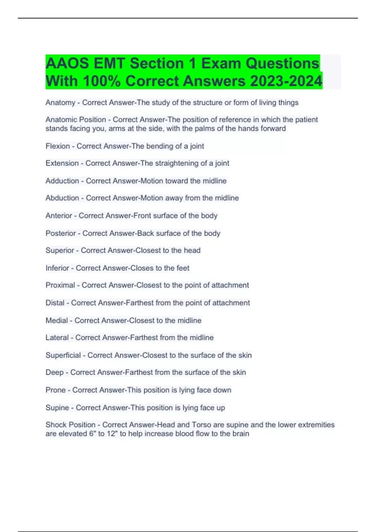 AAOS EMT Section 1 Exam Questions With 100% Correct Answers