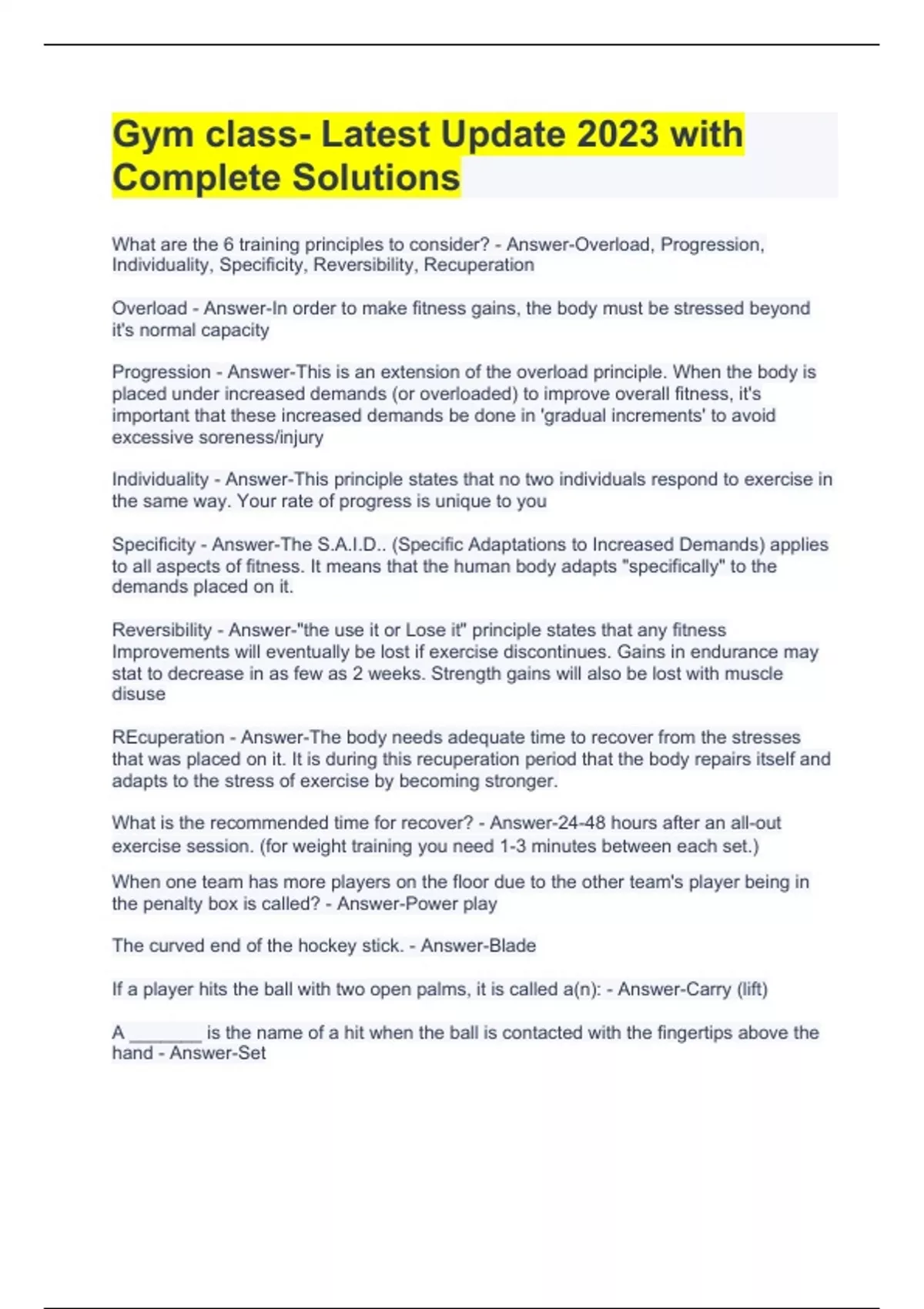 Gym Class Exam Bundle ( A Graded , 100% pass)