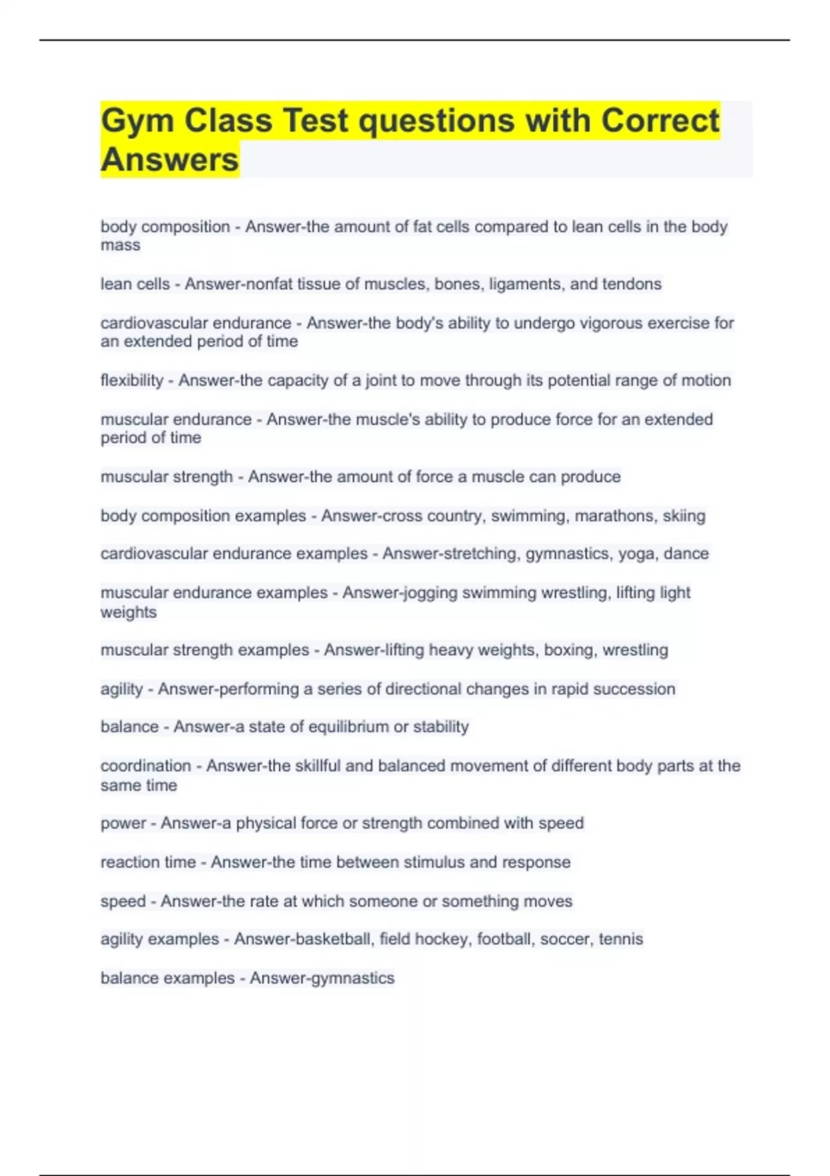 cardiovascular endurance examples - Answer-stretching, gymnastics, yoga, dance