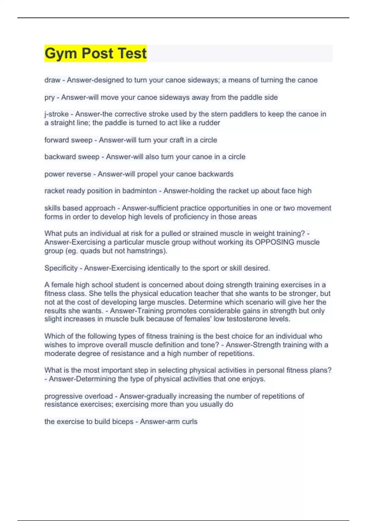 Gym Post Test exam questions with complete solutions