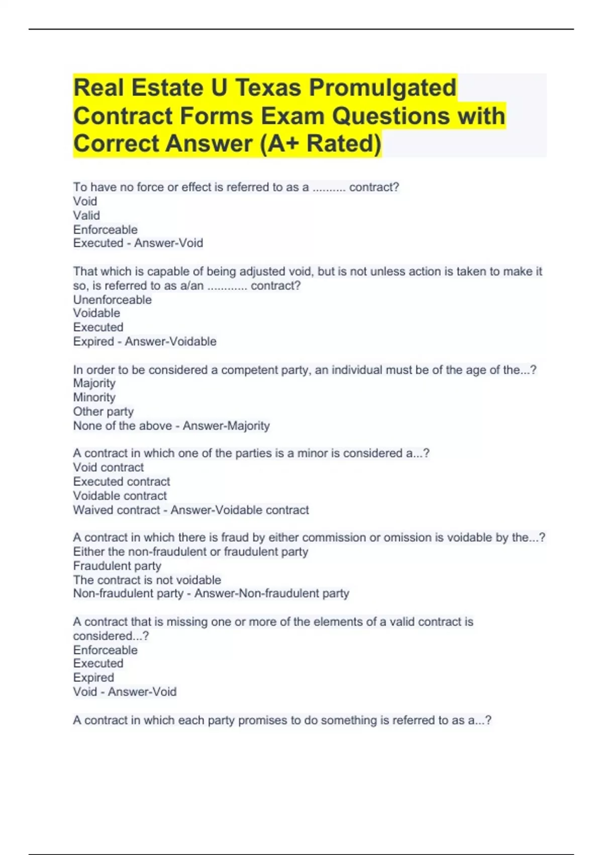 Real Estate U Texas Promulgated Contract Forms Exam Questions with Correct Answer (A+ Rated)