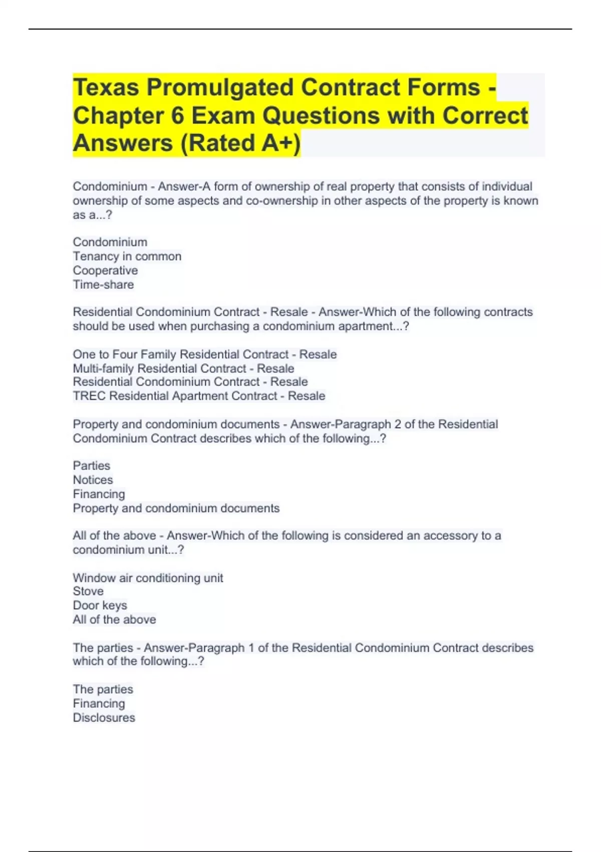 Texas Promulgated Contract Forms - Chapter 6 Exam Questions with Correct Answers (Rated A+)