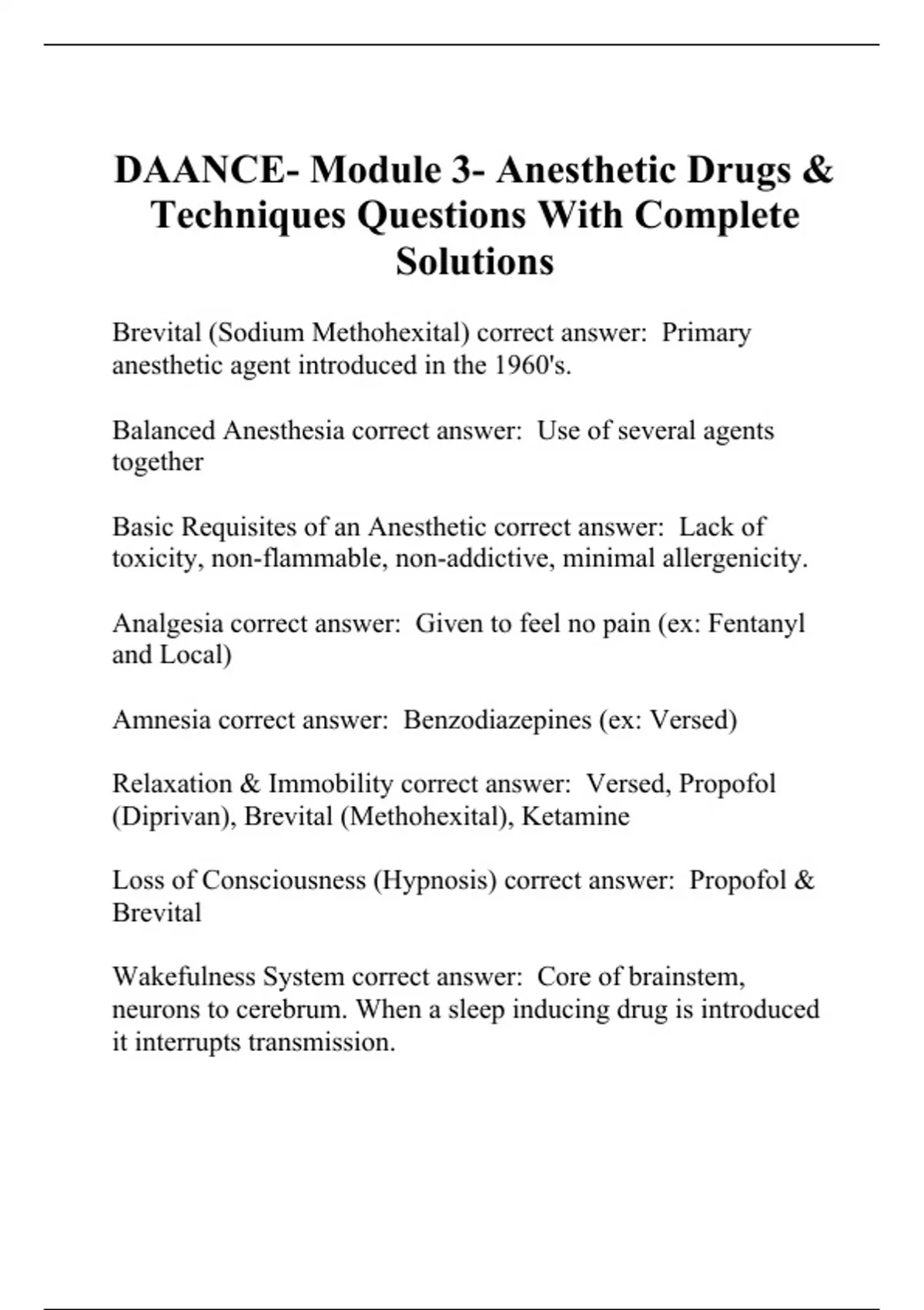 DAANCE- Module 3- Anesthetic Drugs & Techniques Questions With Complete Solutions