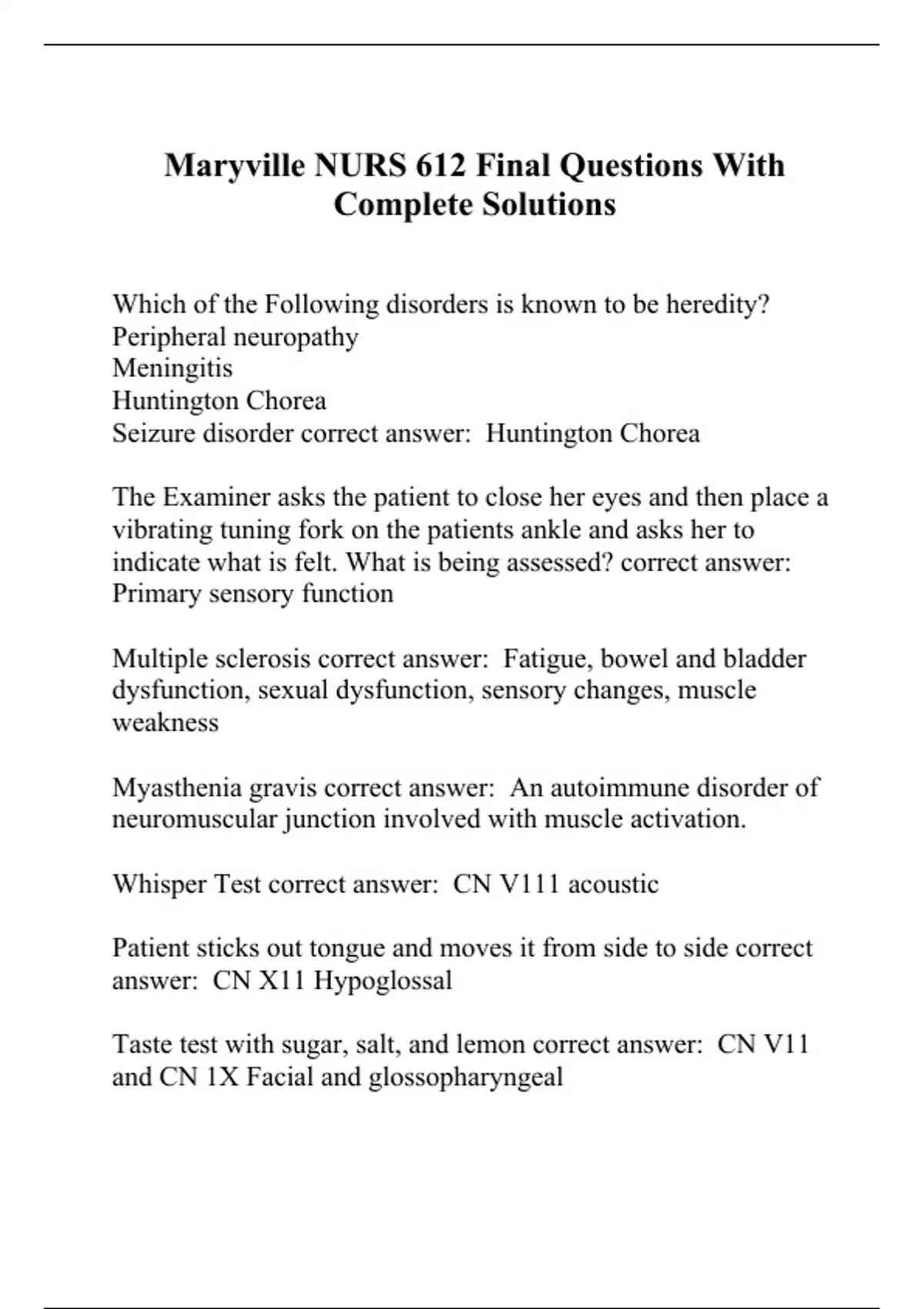 Whisper Test correct answer: CN V111 acoustic