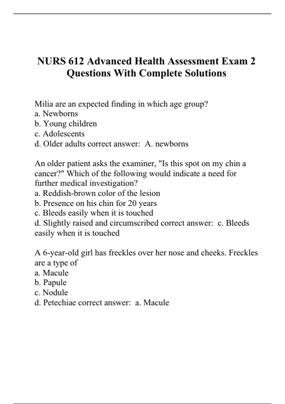 d. Petechiae correct answer: a. Macule