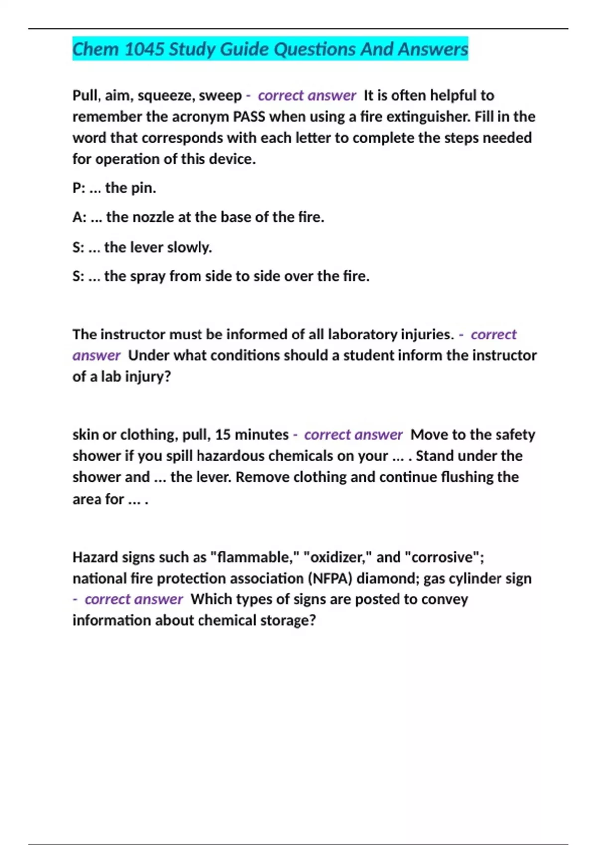 Chem 1045 Study Guide Questions And Answers