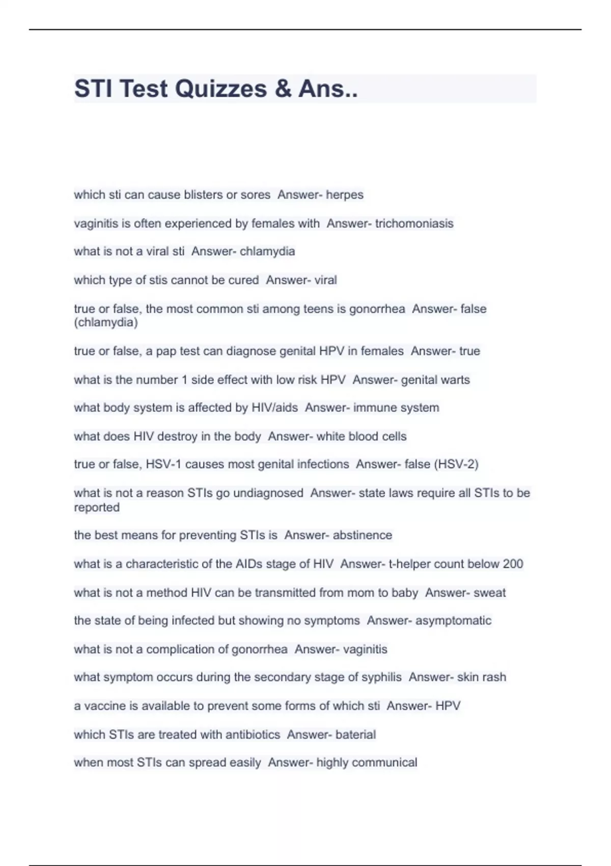 STI Test Quizzes & Ans..