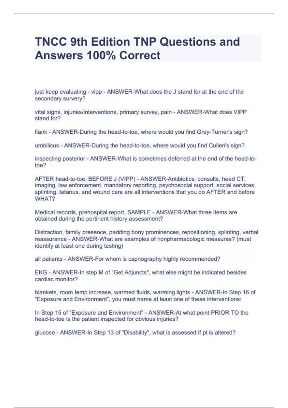 TNCC 9th Edition TNP Questions and Answers 100% Correct