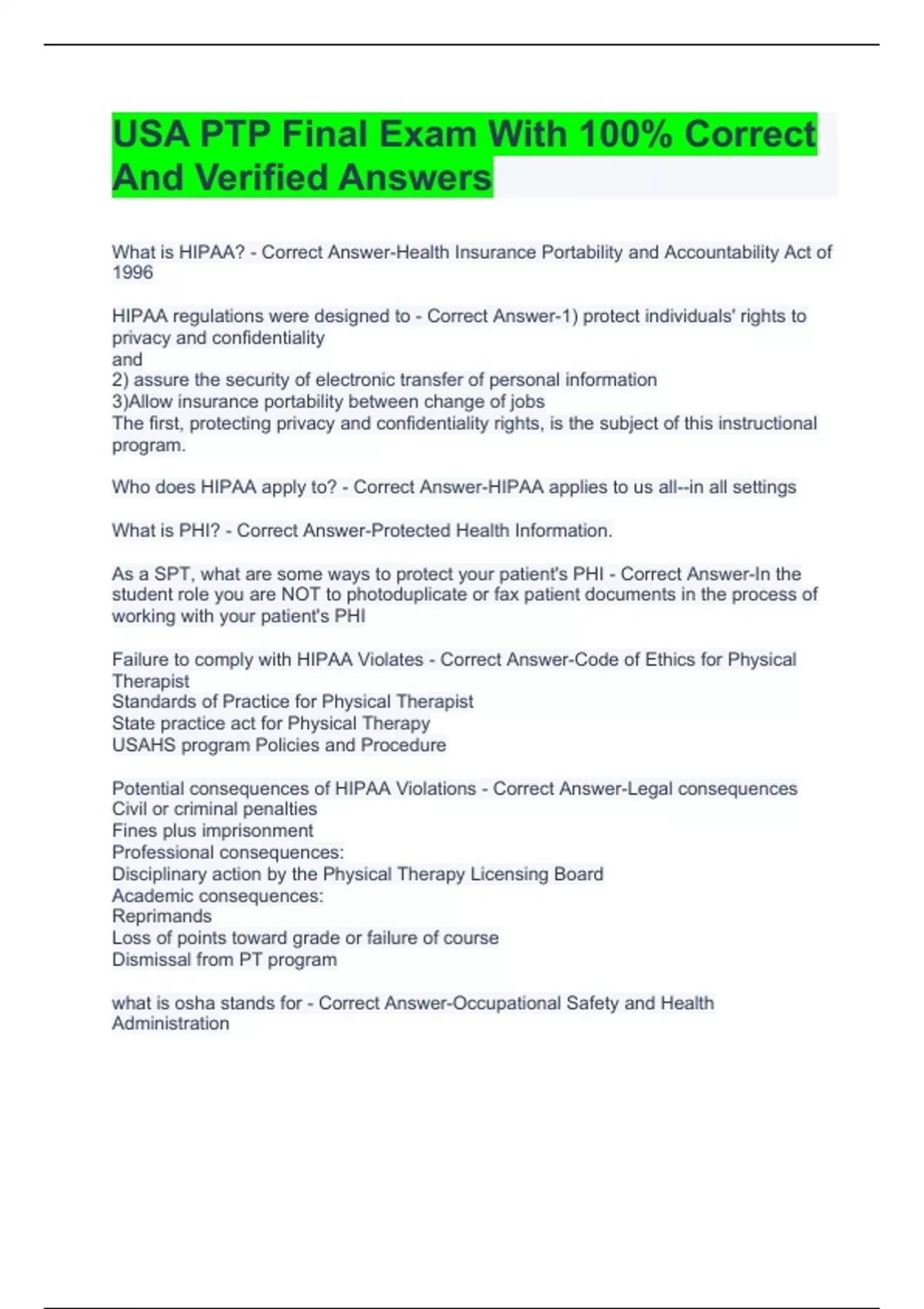 USA PTP Final Exam With 100% Correct And Verified Answers