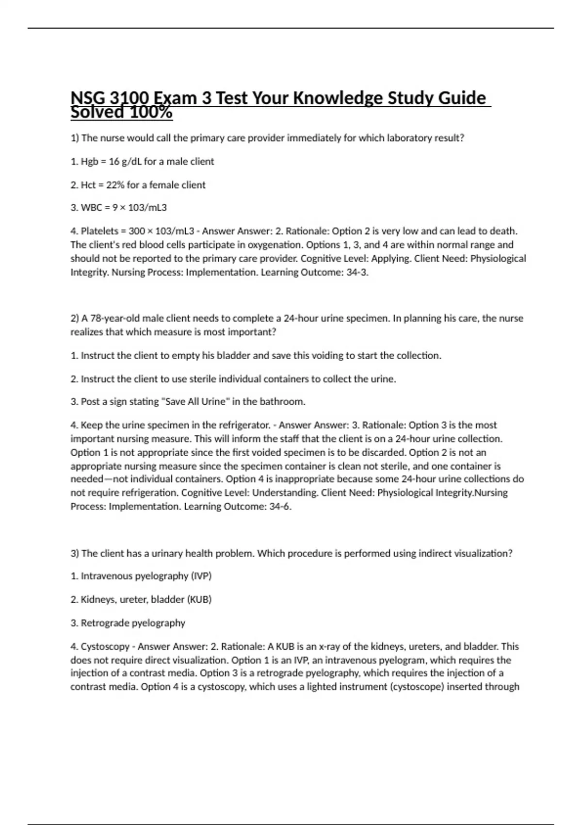 NSG 3100 Exam 3 Test Your Knowledge Study Guide Solved 100%