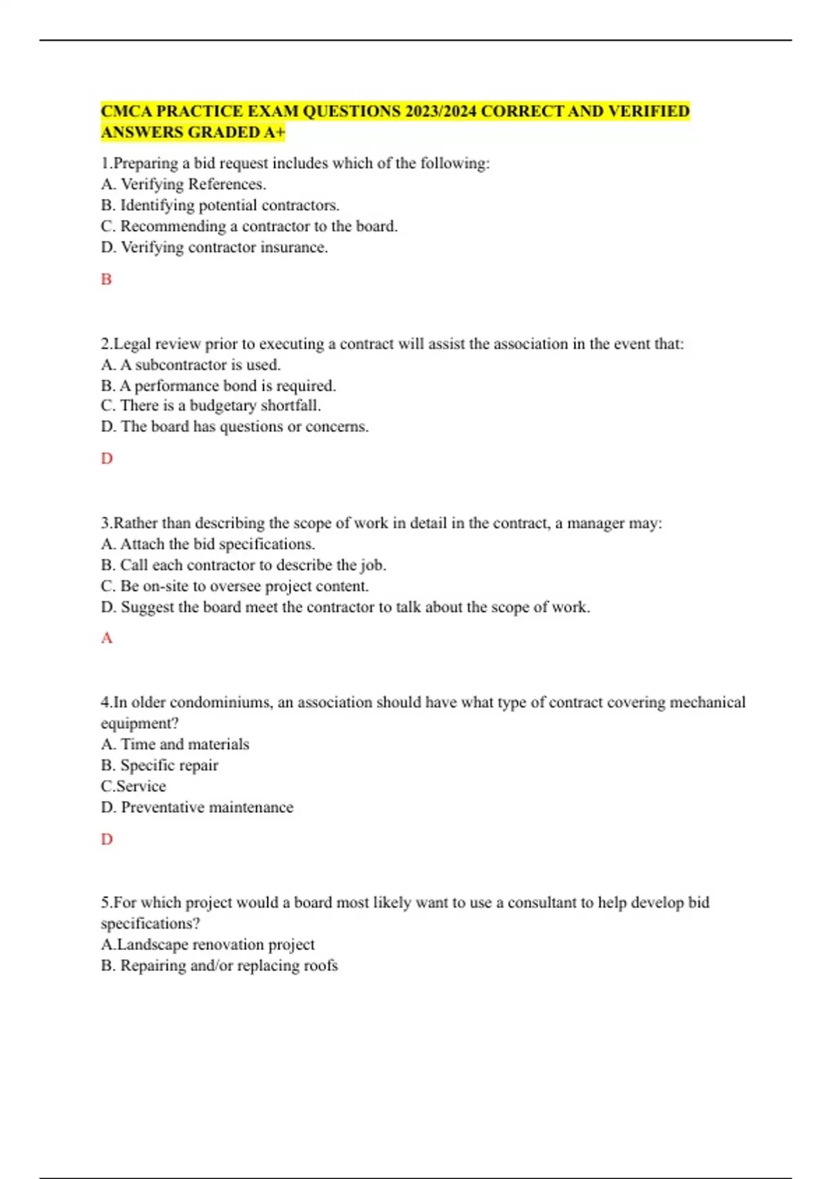 CMCA PRACTICE EXAM QUESTIONS 2023/2024 CORRECT AND VERIFIED ANSWERS GRADED A+