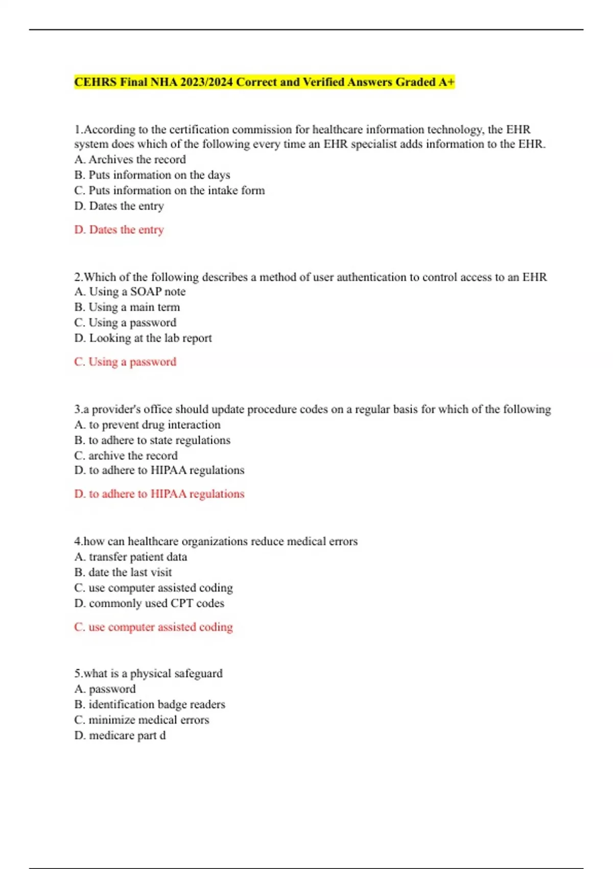 CEHRS Final NHA 2023/2024 Correct and Verified Answers Graded A+
