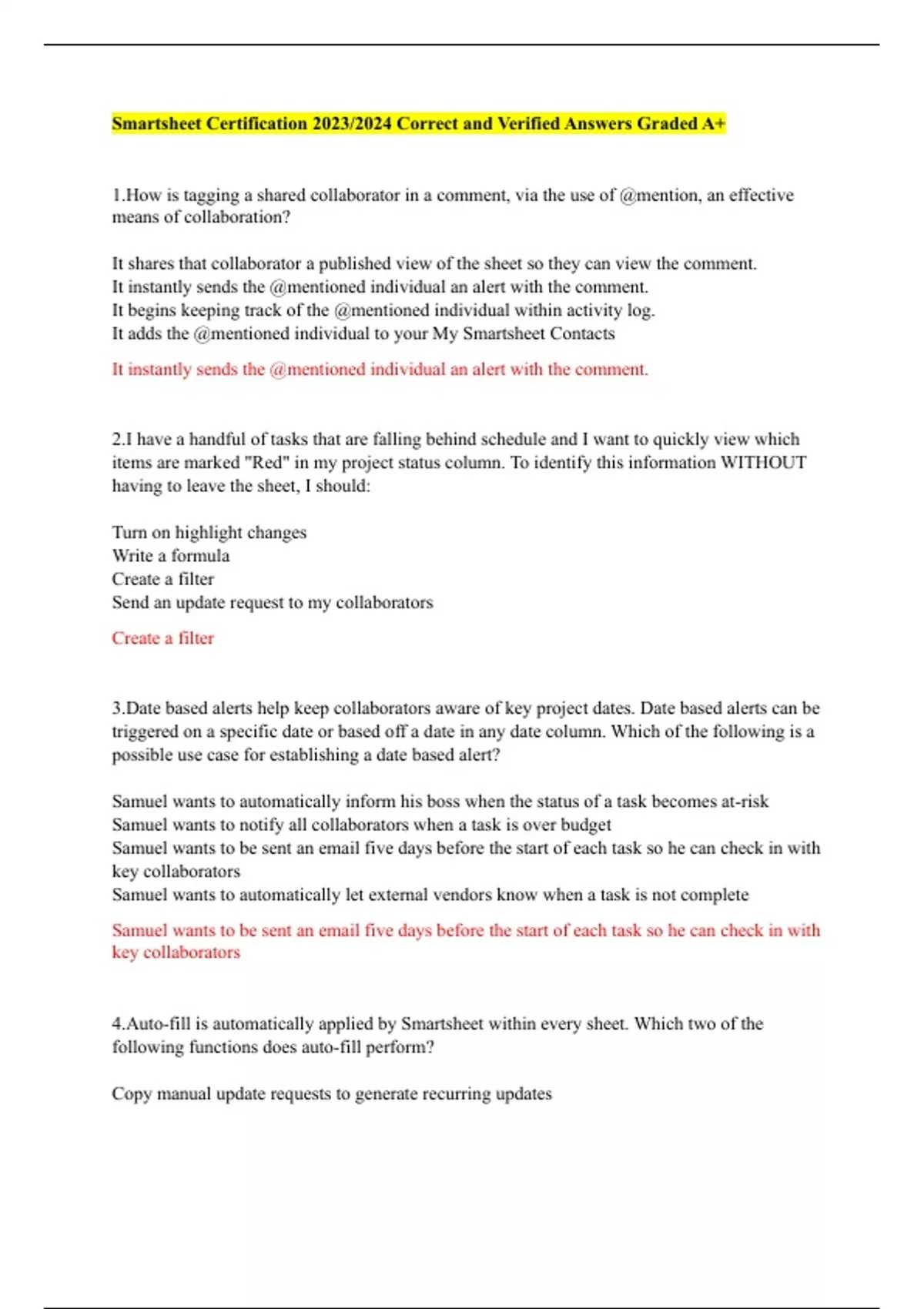 Smartsheet Certification 2023/2024 Correct and Verified Answers Graded A+
