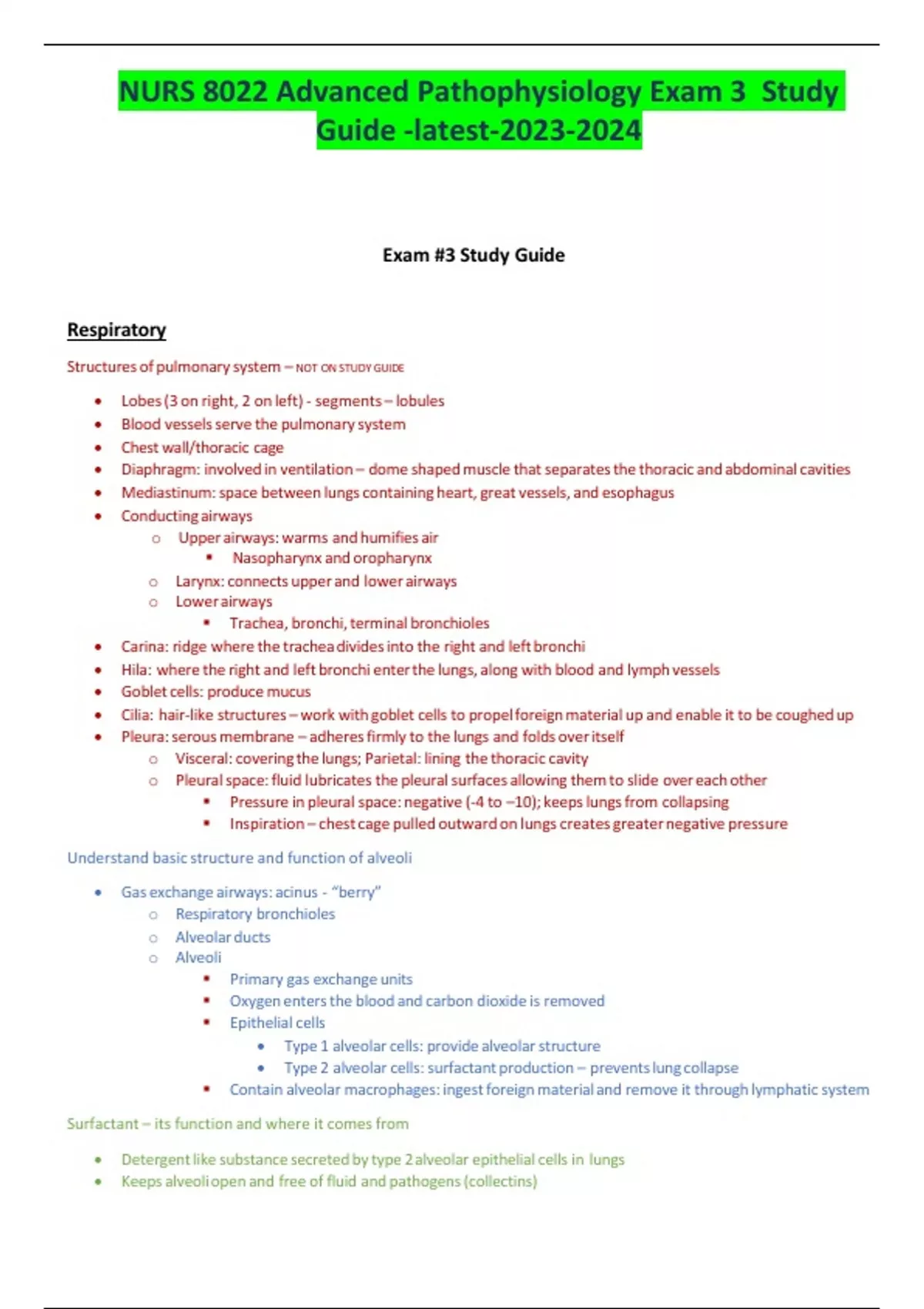 NURS 8022 Advanced Pathophysiology Exam 3 Study Guide -latest-