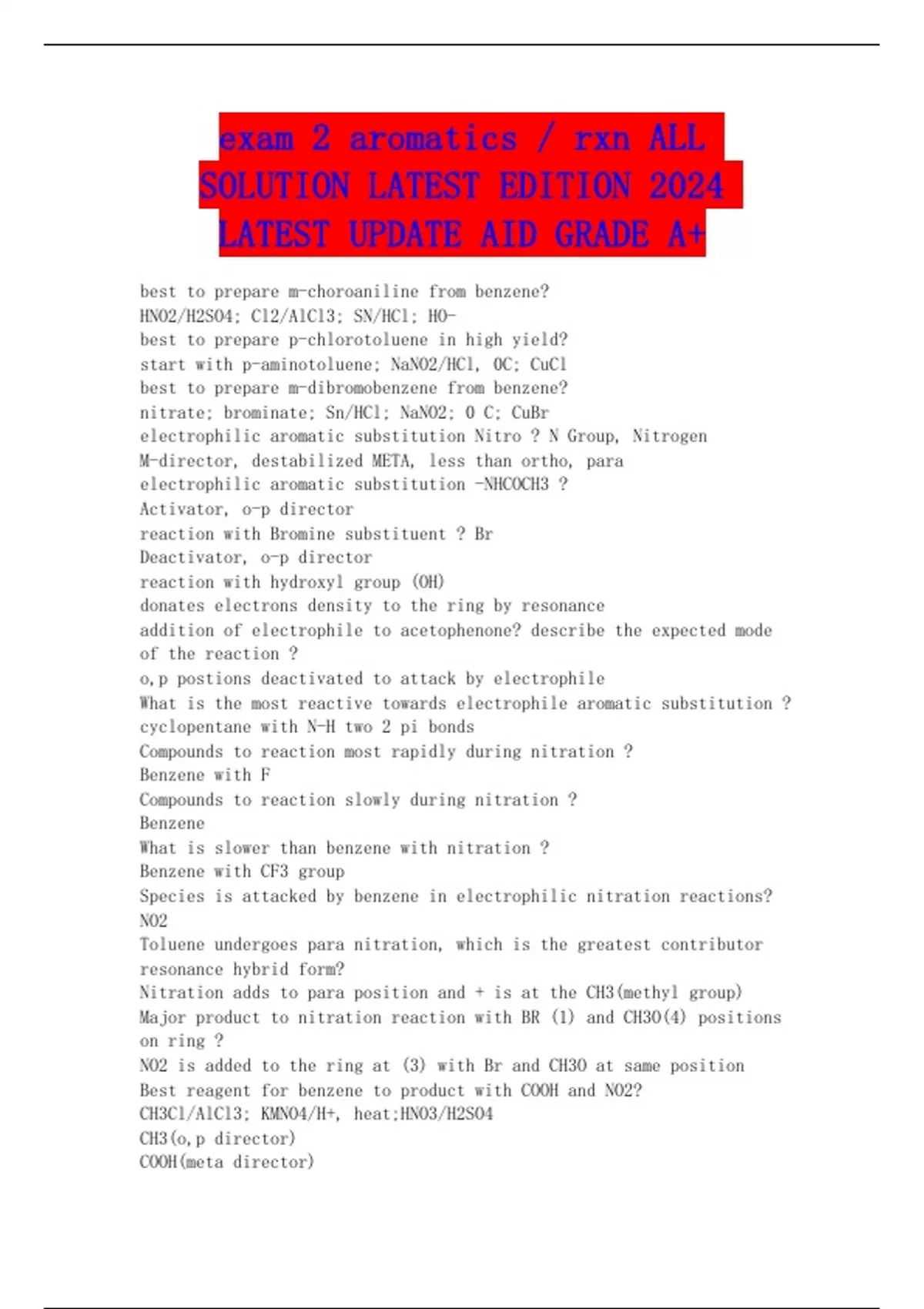 exam 2 aromatics / rxn ALL SOLUTION LATEST EDITION 2024 LATEST UPDATE AID GRADE A+