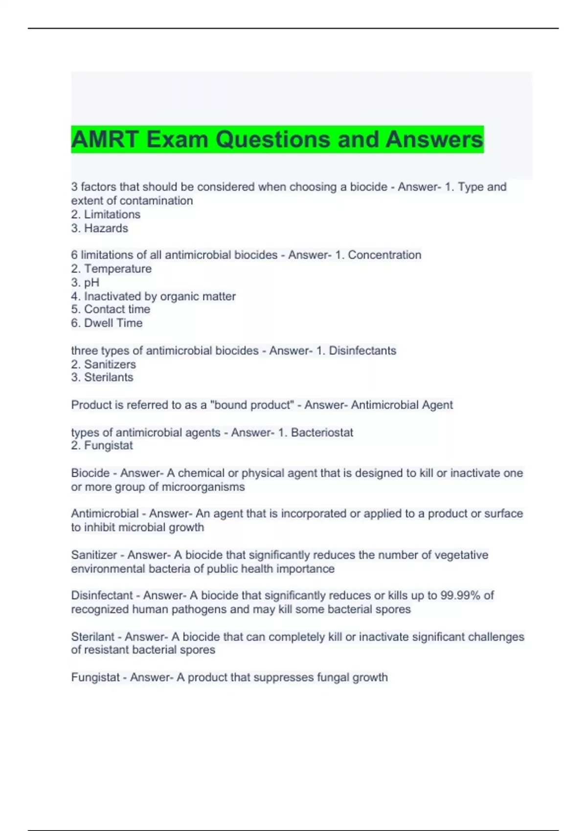 AMRT Exam Questions and Answers Graded A