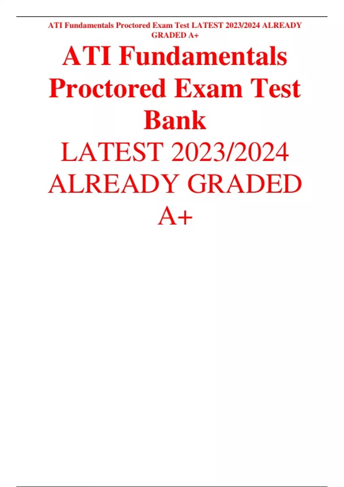 ATI Fundamentals Proctored Exam Test LATEST 2023/2024 ALREADY GRADED A+