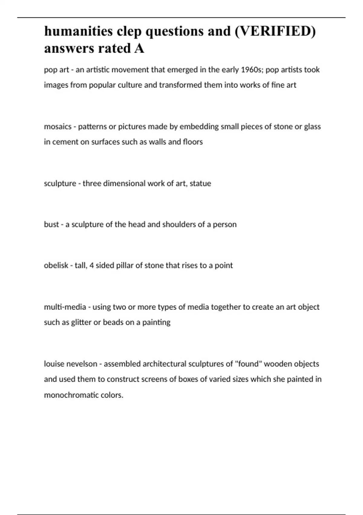 humanities clep questions and verified answers r