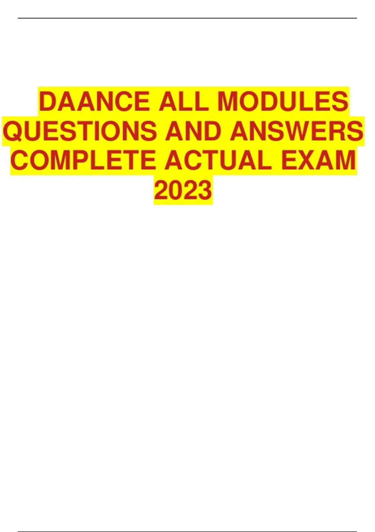 DAANCE ALL MODULES QUESTIONS AND ANSWERS COMPLETE ACTUAL EXAM 2023