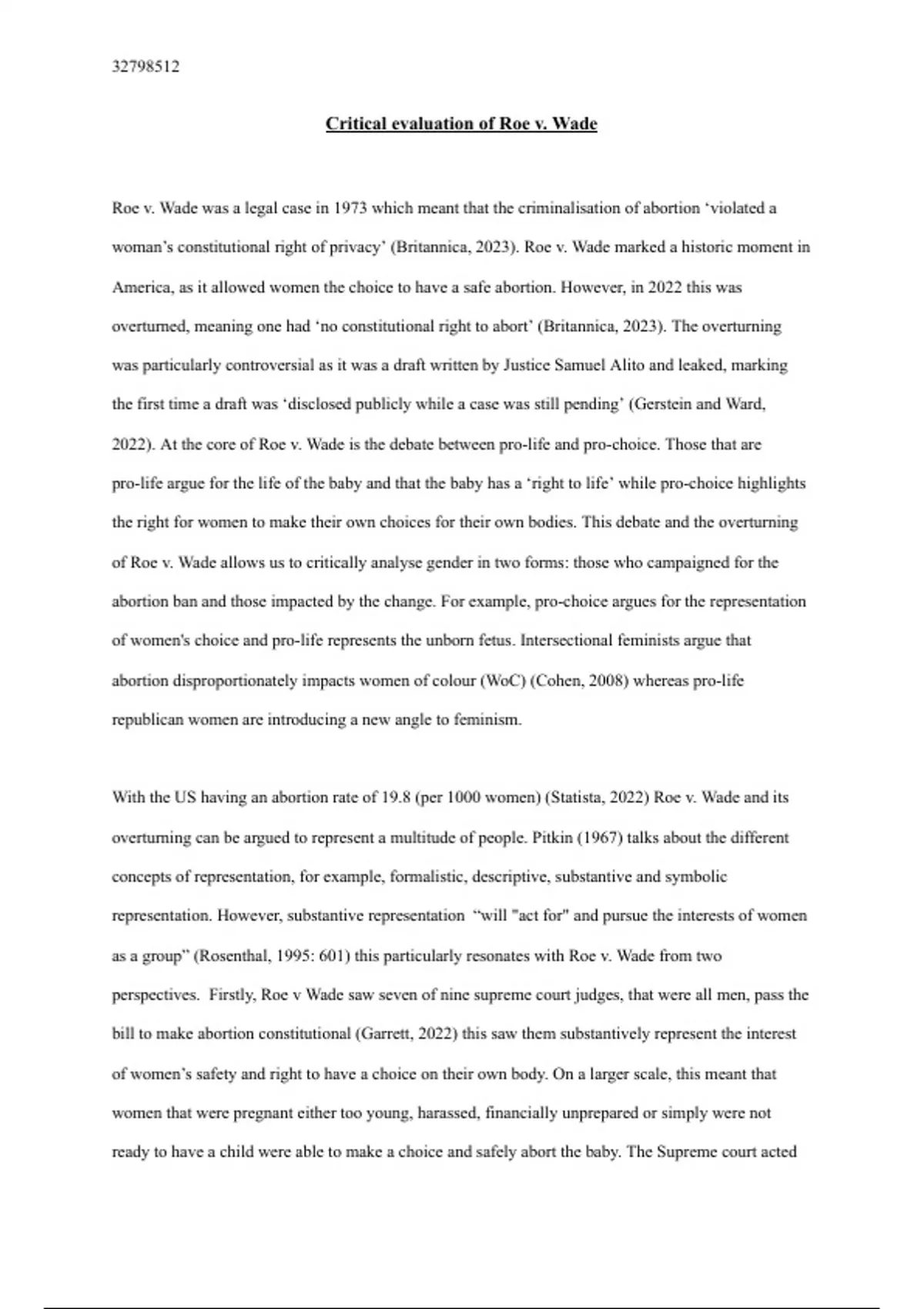woman’s constitutional right of privacy’ (Britannica, 2023). Roe v. Wade marked a historic moment in