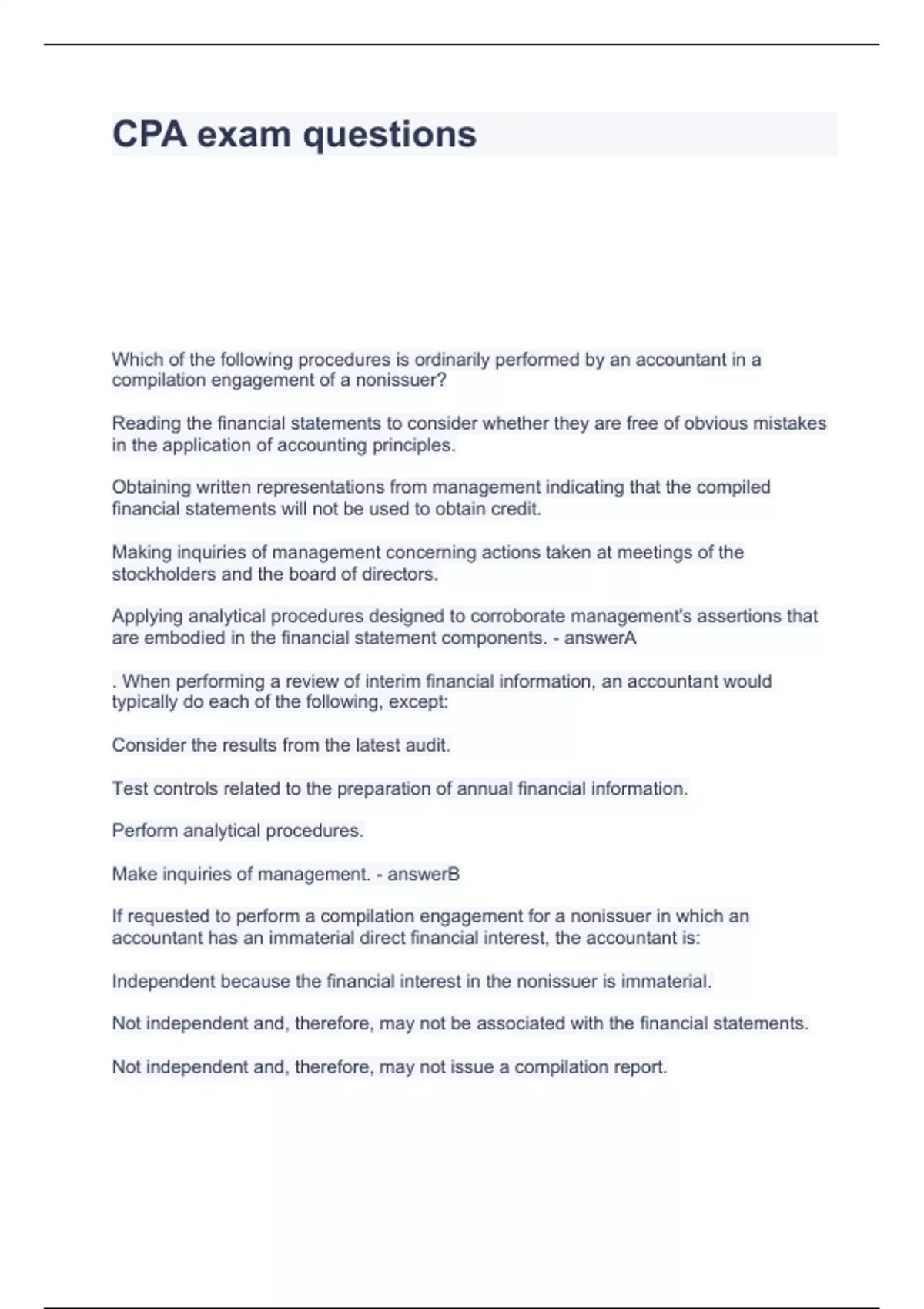 CPA exam questions