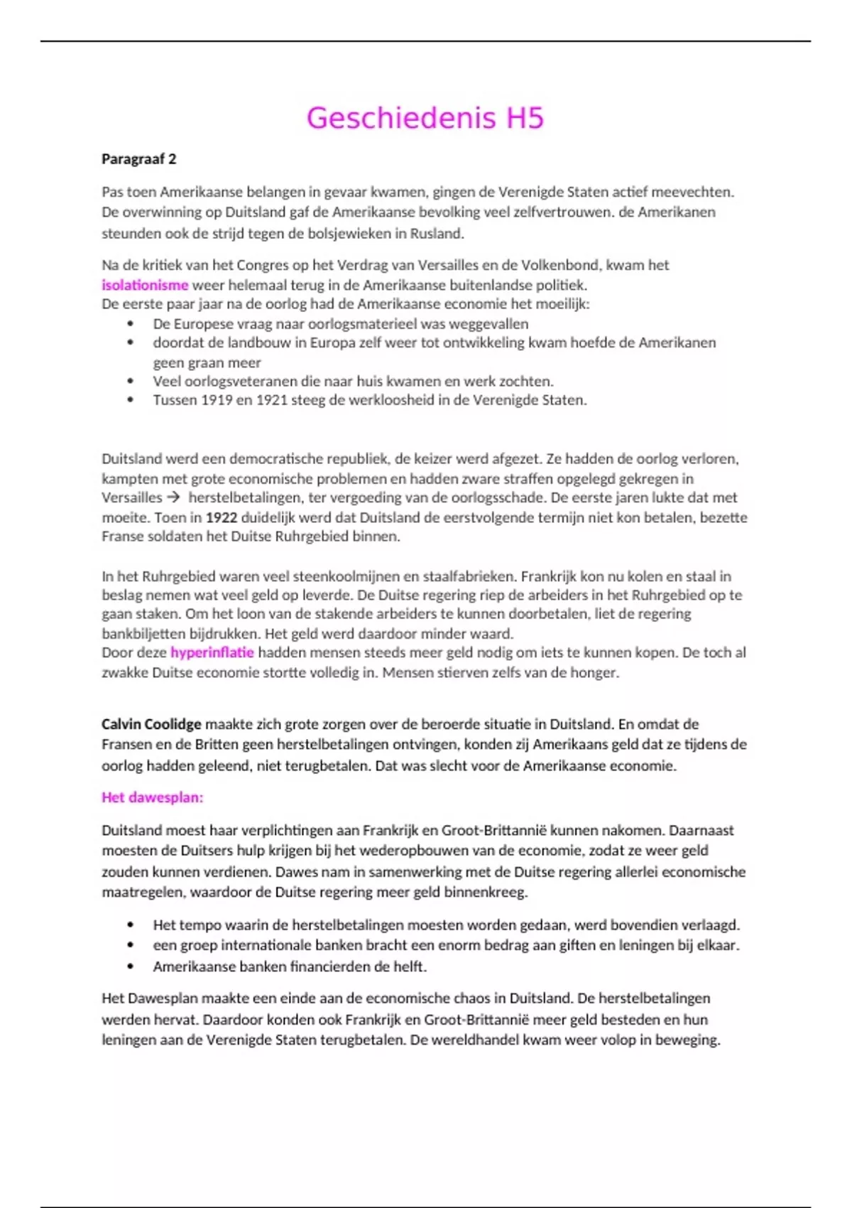Het Dawesplan maakte een einde aan de economische chaos in Duitsland. De herstelbetalingen