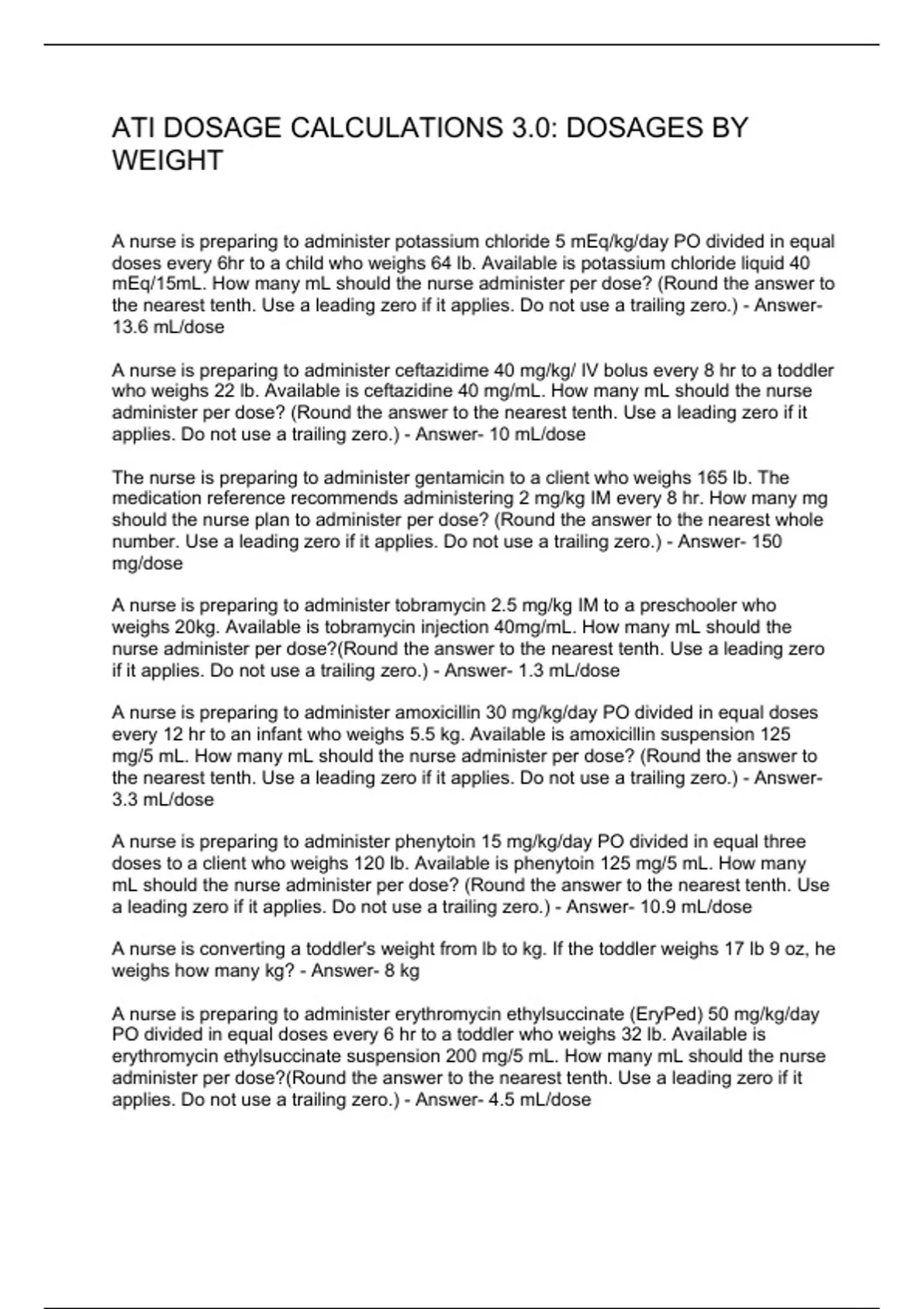 ATI Dosage Calculations 3.0: Dosages by Weight In-class activity