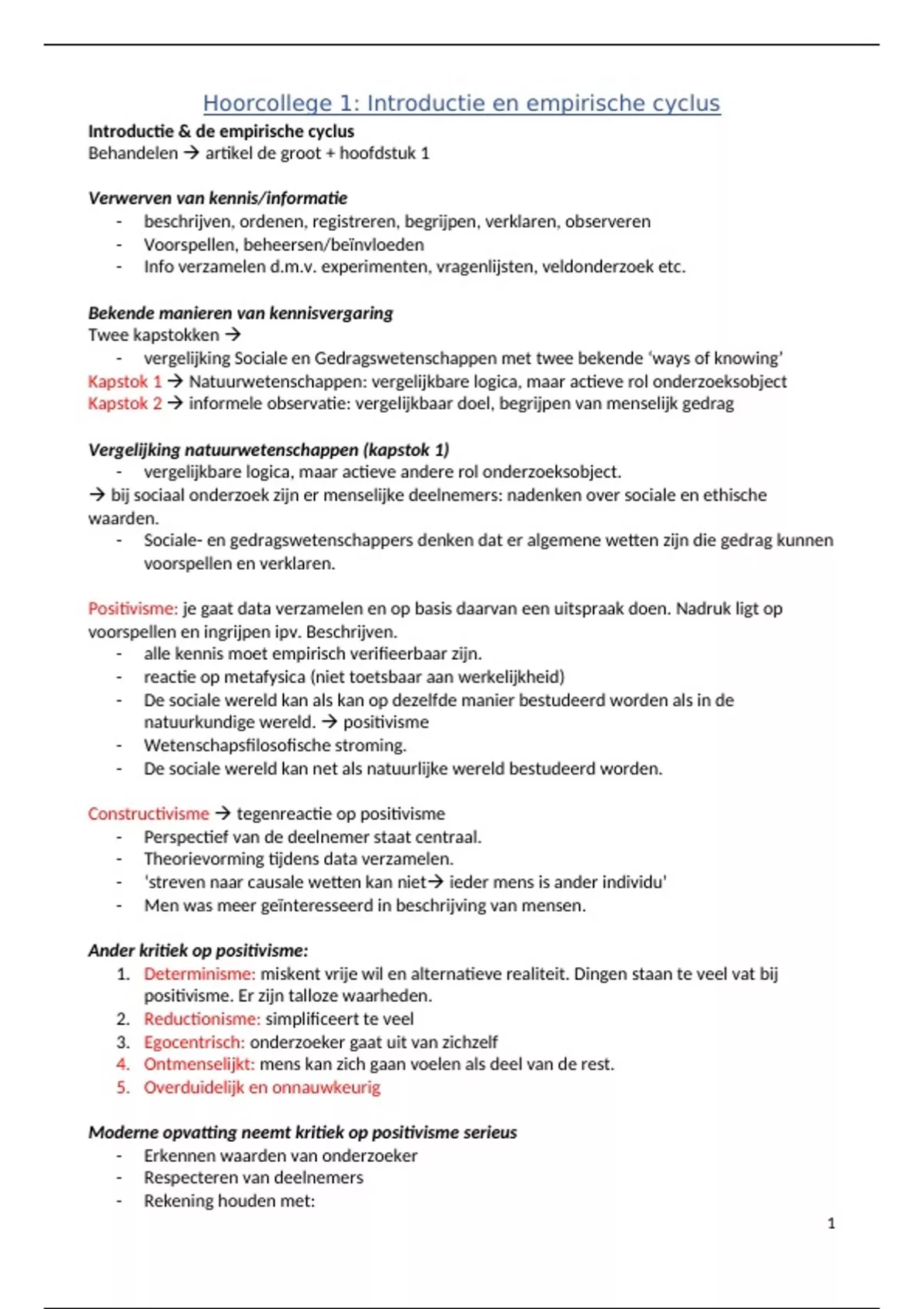 Positivisme: je gaat data verzamelen en op basis daarvan een uitspraak doen. Nadruk ligt op