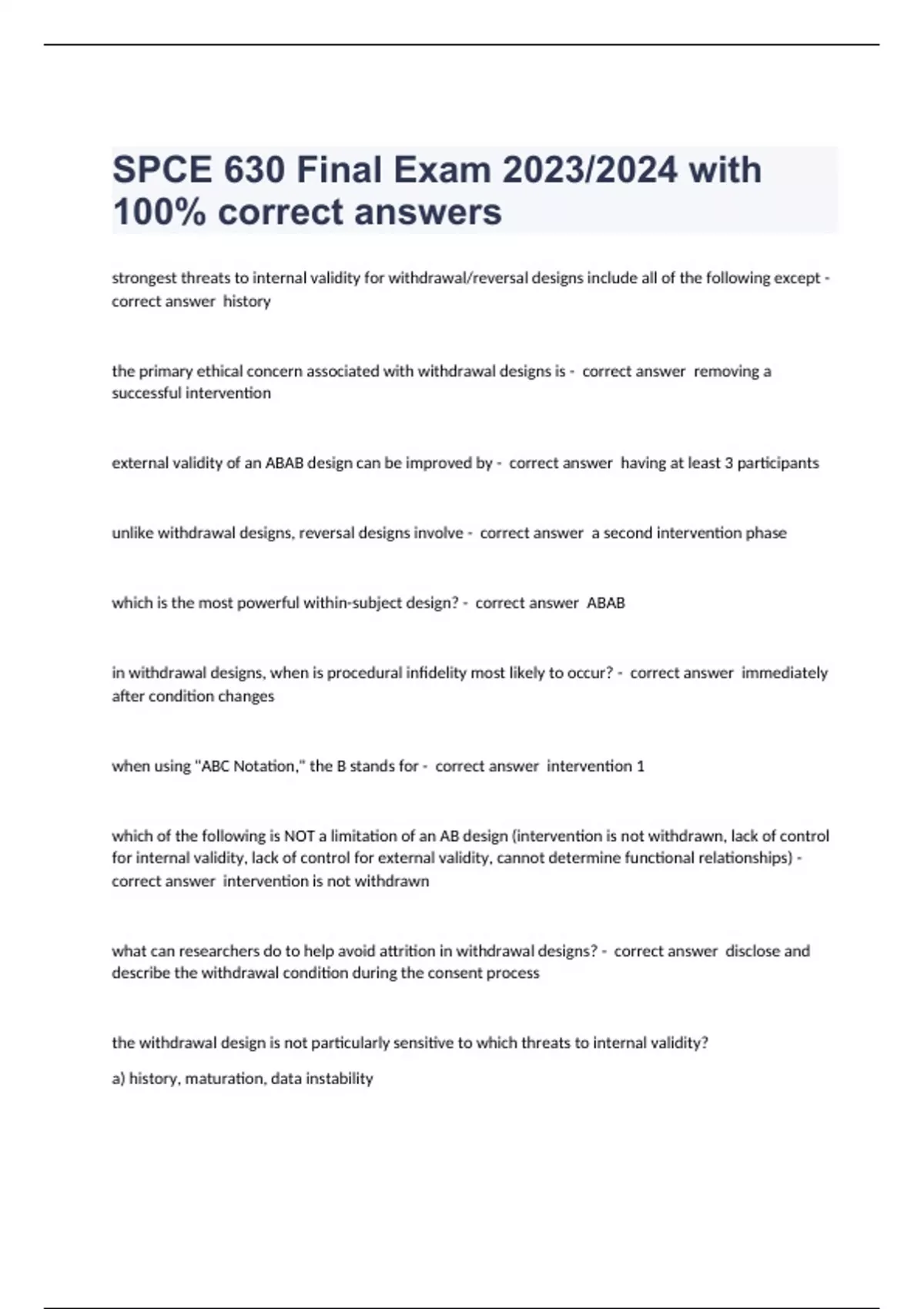 spce 630 final exam with 100 correct a
