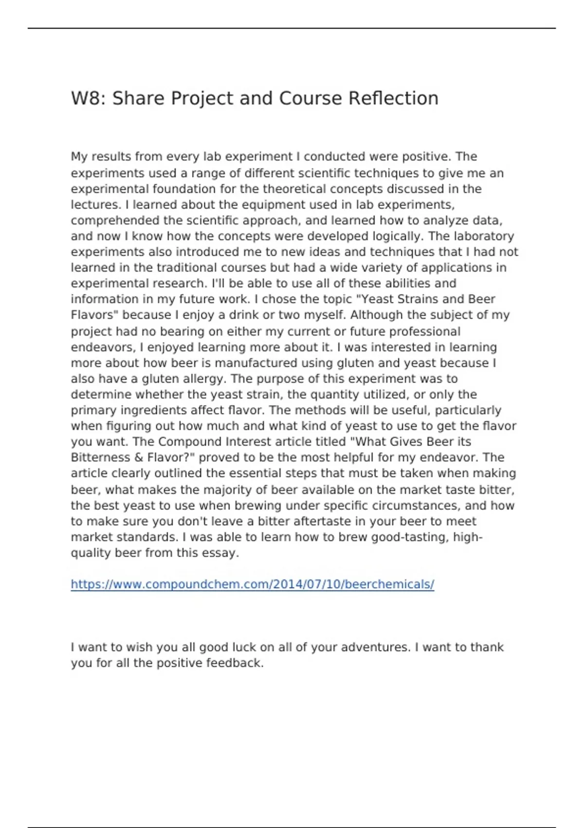 BIOL202 Week 8 Discussion; Share Project and Course Reflection