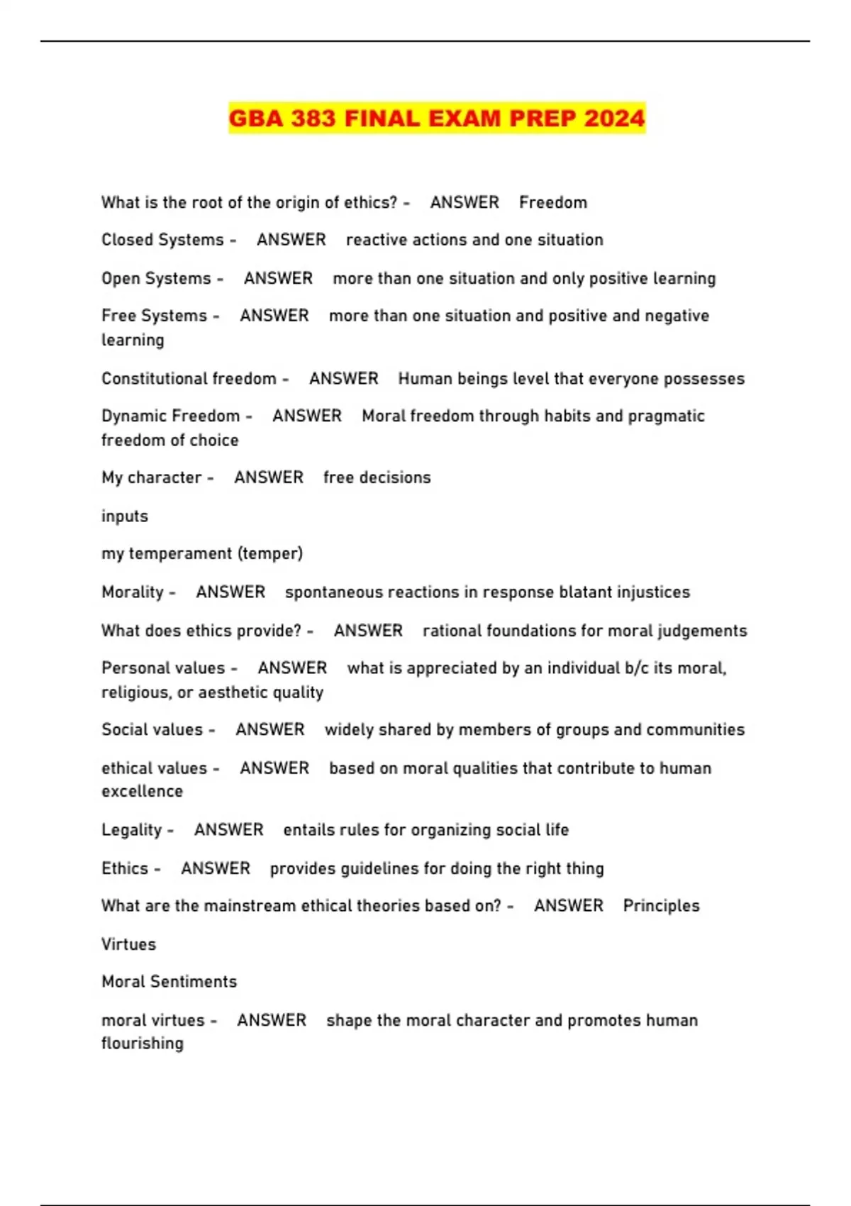 GBA 383 FINAL EXAM PREP 2024...