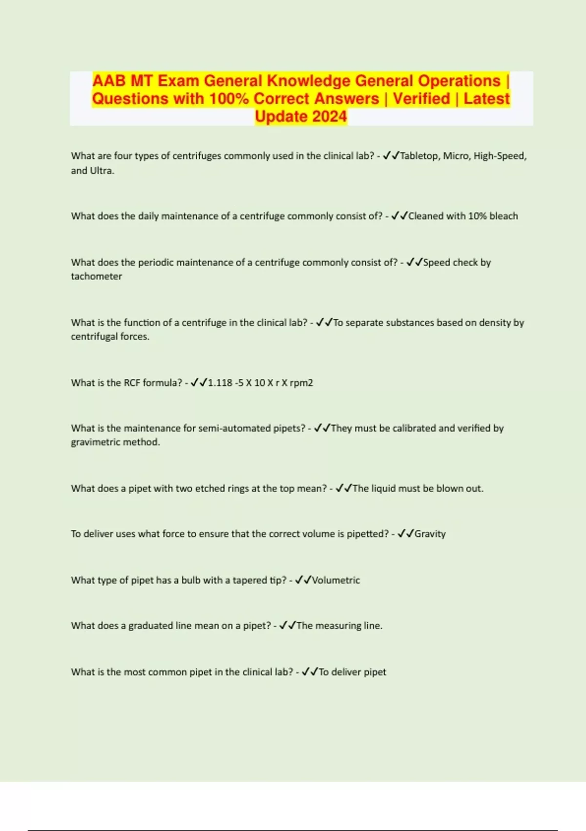 AAB MT Exam General Knowledge General Operations | Questions with 100% Correct Answers | Verified | Latest Update 2024