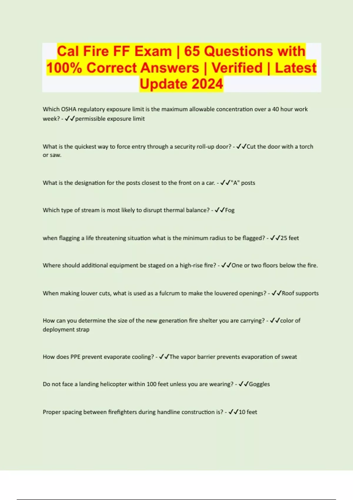 Cal Fire FF Exam | 65 Questions with 100% Correct Answers | Verified | Latest Update 2024