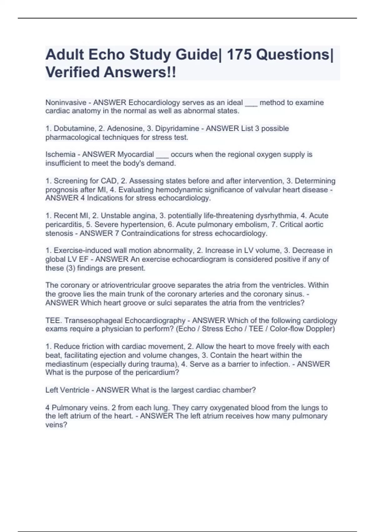 Adult Echo Study Guide| 175 Questions| Verified Answers!!