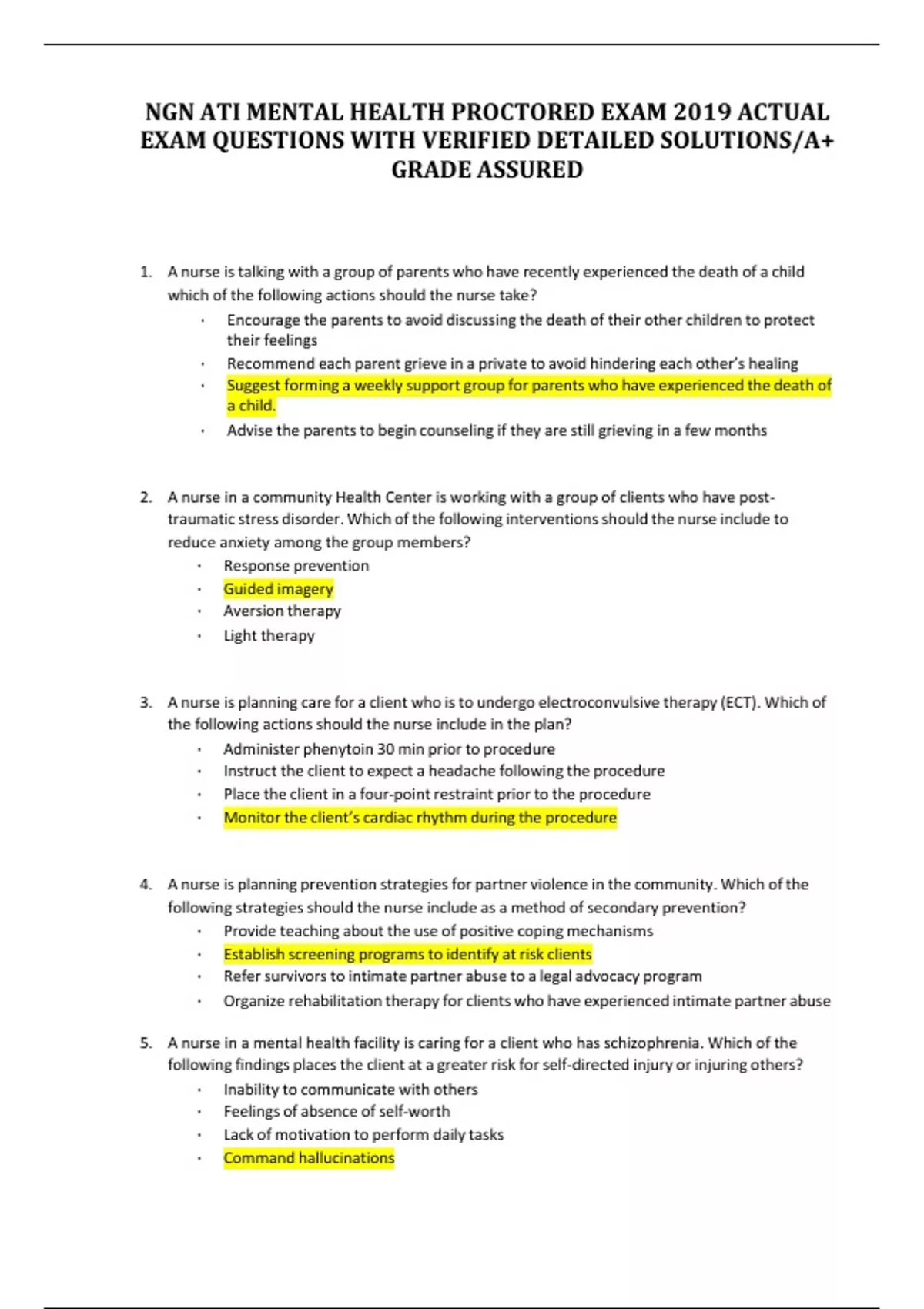 NGN ATI MENTAL HEALTH PROCTORED EXAM 2019 ACTUAL EXAM QUESTIONS WITH VERIFIED DETAILED SOLUTIONS/A+ GRADE ASSURED