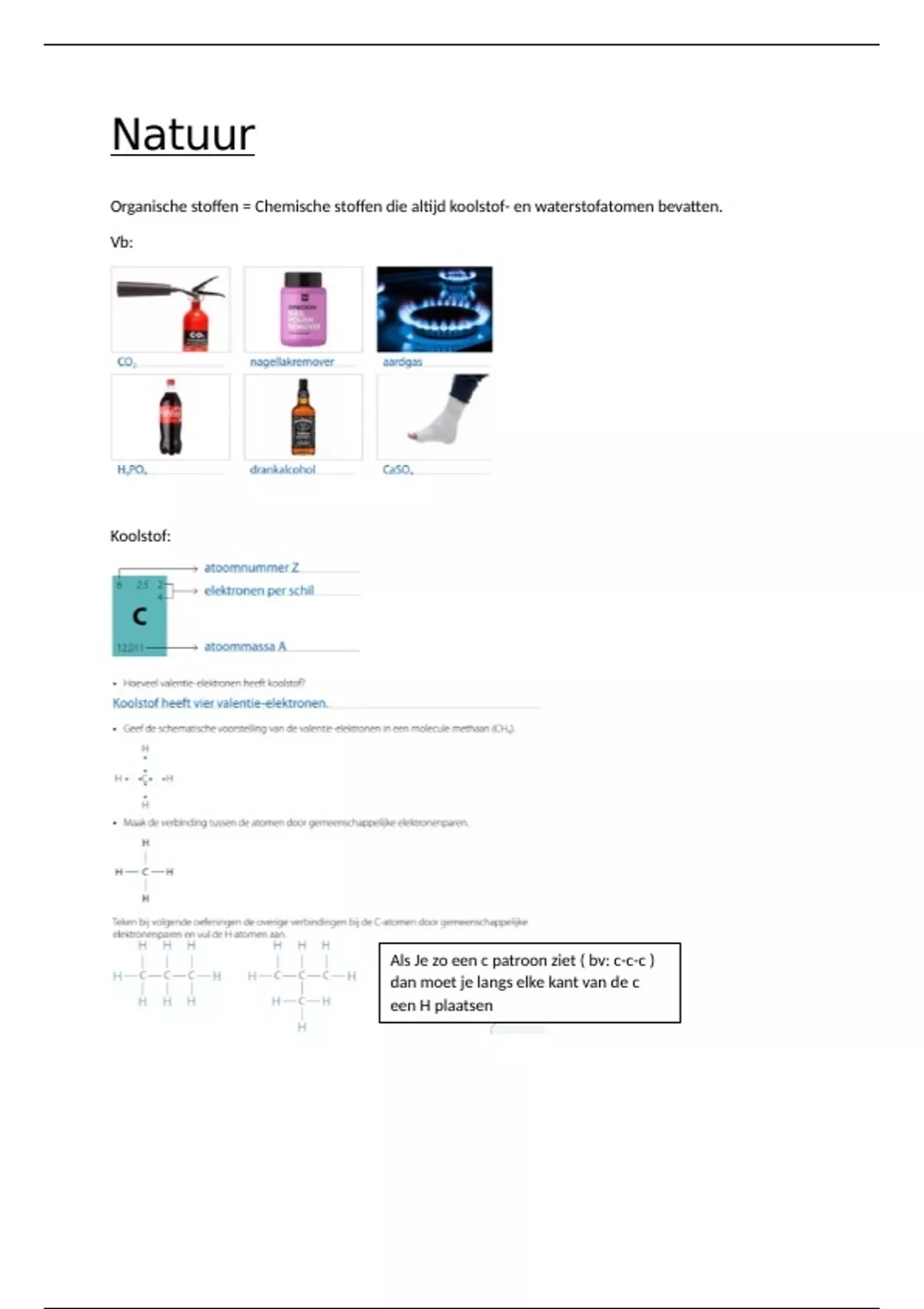 Organische stoffen = Chemische stoffen die altijd koolstof- en waterstofatomen bevatten.