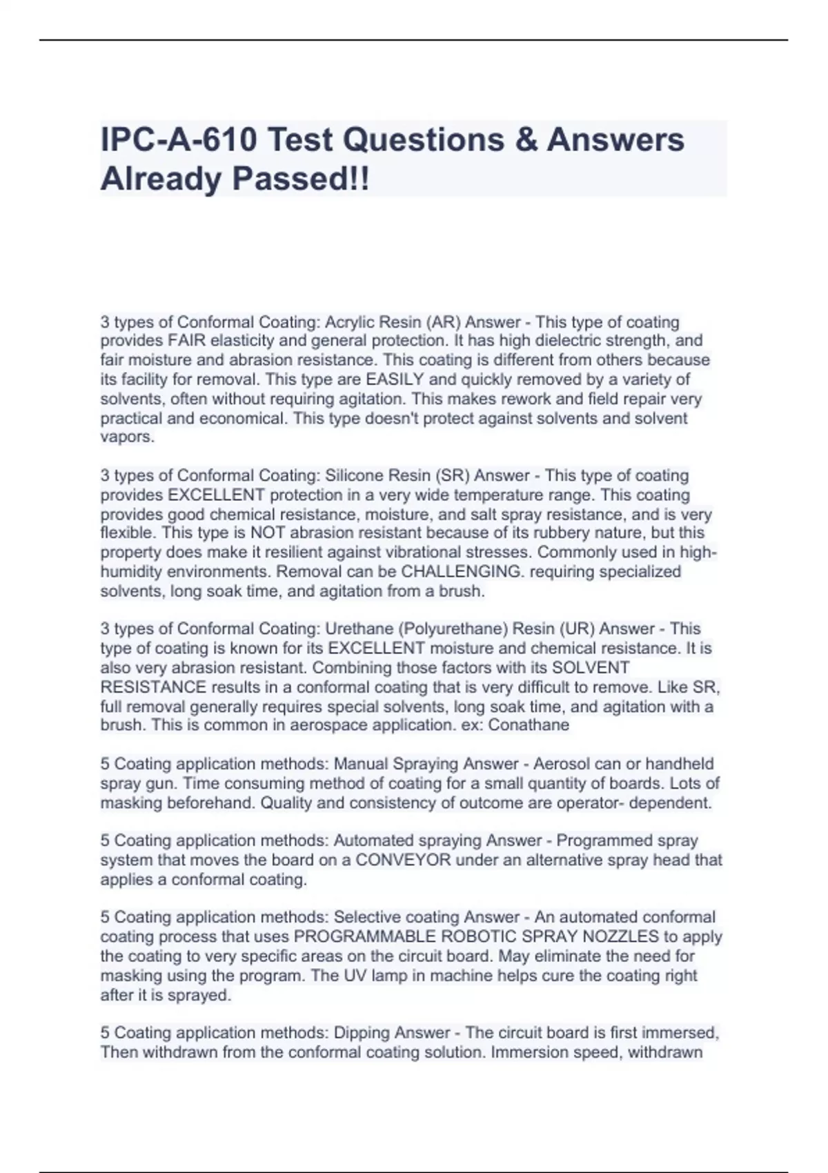 IPC-A-610 Test Questions & Answers Already Passed!!