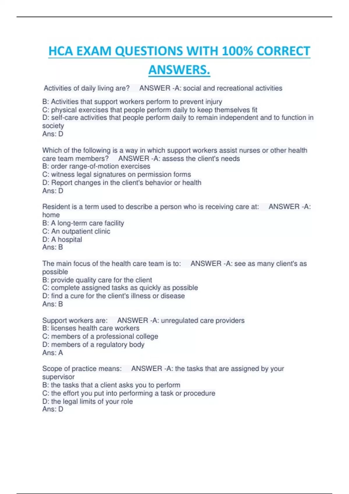HCA EXAM QUESTIONS WITH 100% CORRECT ANSWERS.HCA EXAM QUESTIONS WITH 100% CORRECT ANSWERS.HCA EXAM QUESTIONS WITH 100% CORRECT AHCA EXAM QUESTIONS WITH 100% CORRECT ANSWERS.HCA EXAM QUESTIONS WITH 100% CORRECT ANSWERS.NSWERS.HCA EXAM QUESTIONS WITH 100% CORRECT ANSWERS.HCA EXAM QUESTIONS WITH 100% CORRECT ANSWERS.HCA EXAM QUESTIONS WITH 100% CORRECT ANSWERS.HCA EXAM QUESTIONS WITH 100% CORRECT ANSWERS.