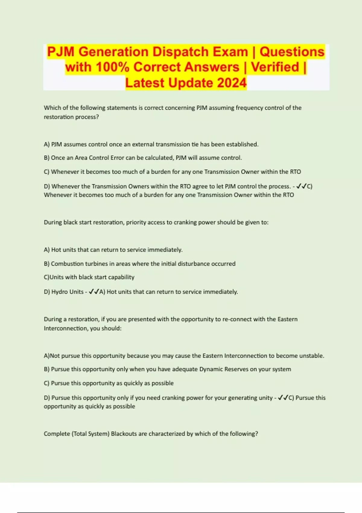 PJM Generation Dispatch Exam | Questions with 100% Correct Answers | Verified | Latest Update 2024 | 61 Pages