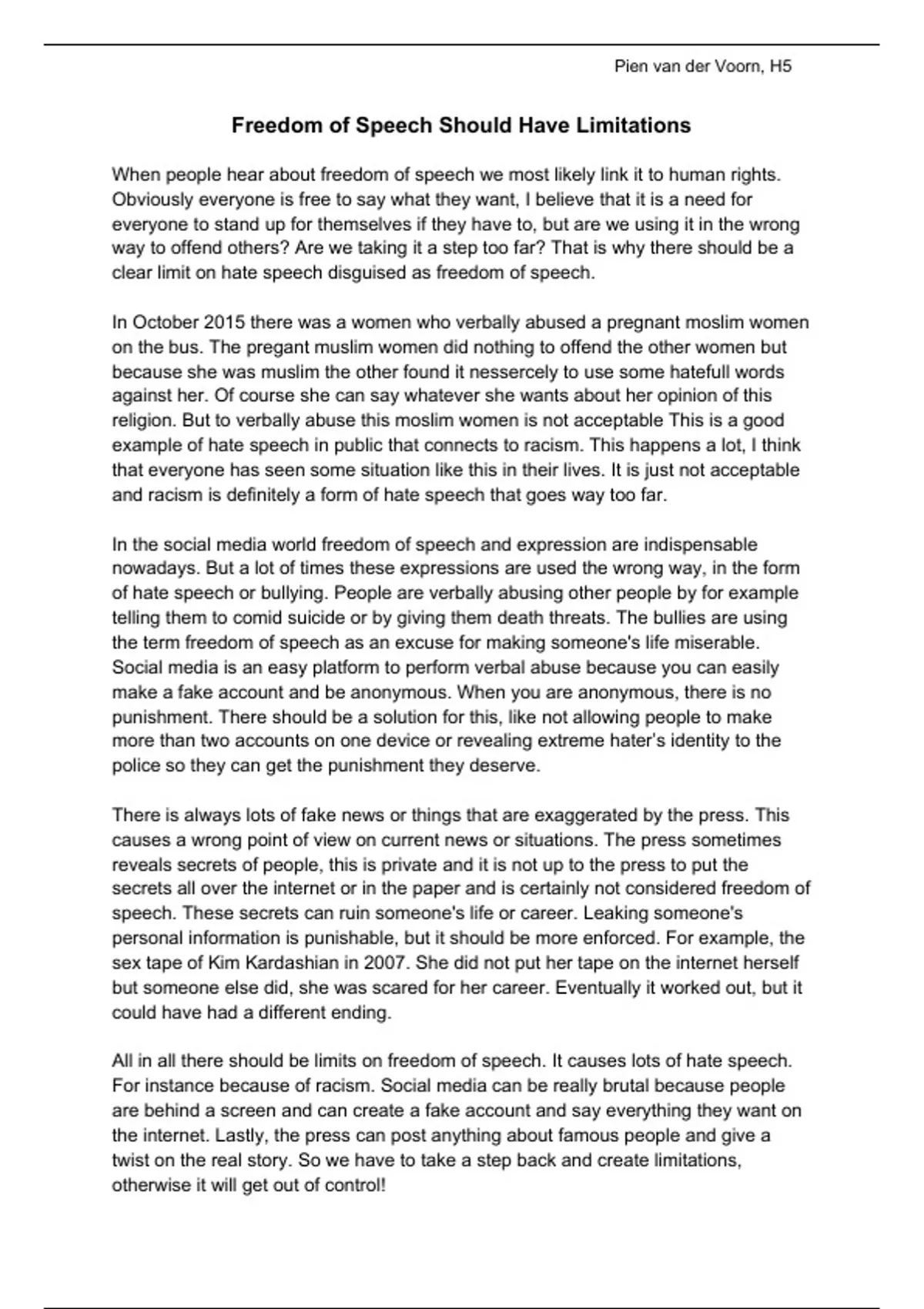 All in all there should be limits on freedom of speech. It causes lots of hate speech.