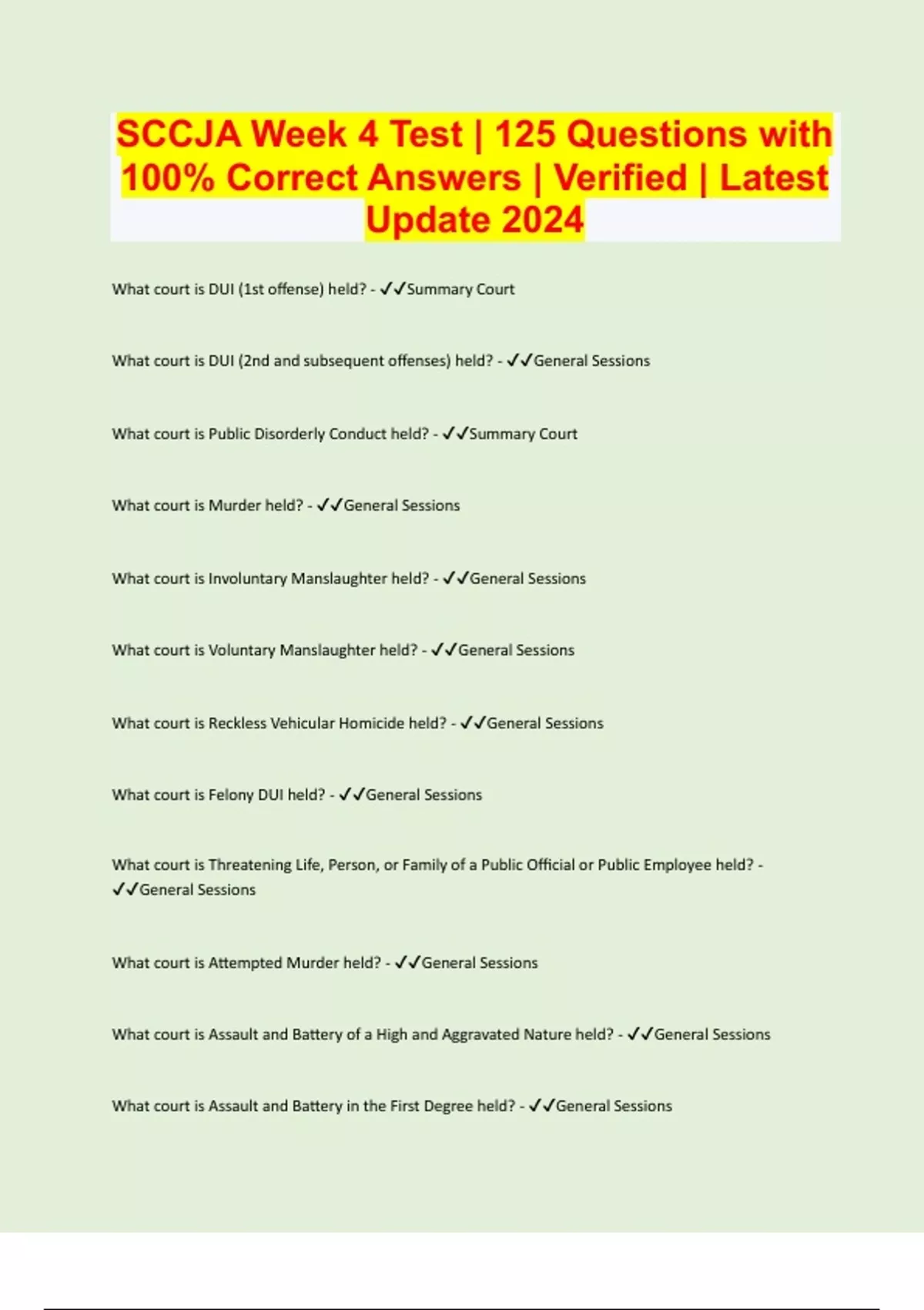 SCCJA Week 4 Test | 125 Questions with 100% Correct Answers | Verified | Latest Update 2024