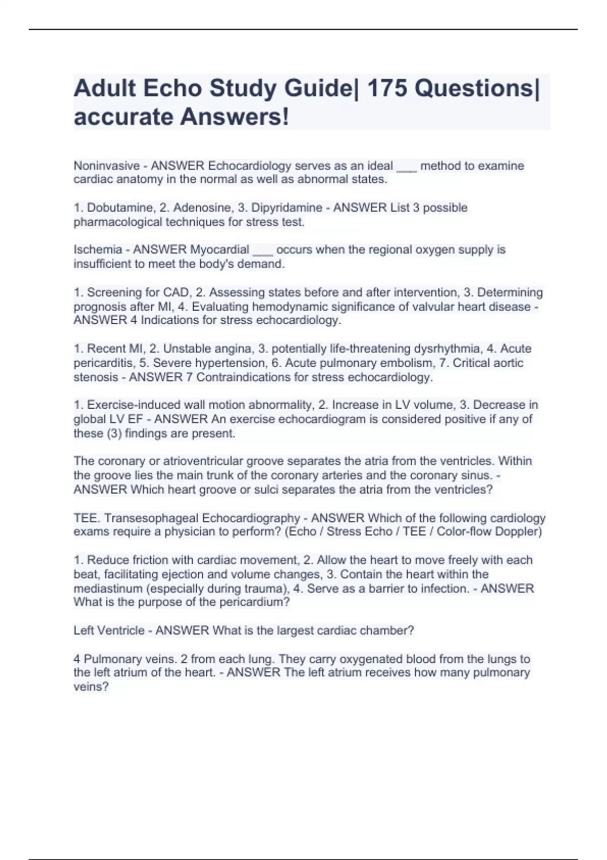 frequency transducers. - ANSWER Which cardiac examination provides the highest resolution?