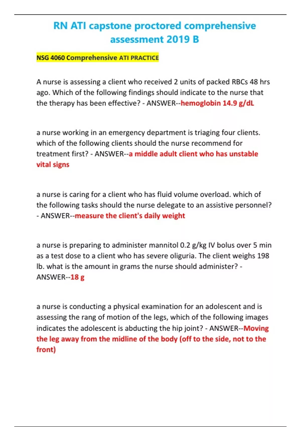 NSG 4060 Comprehensive ATI PRACTICE