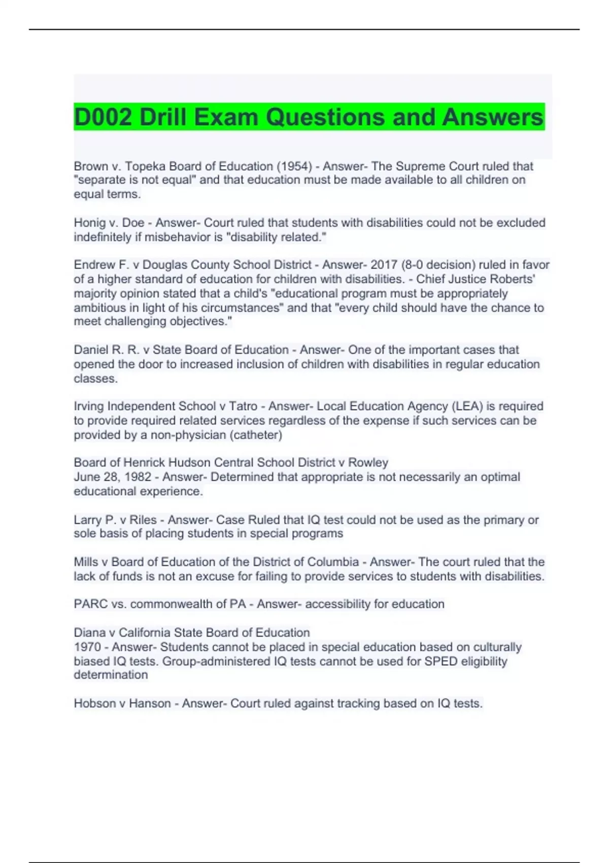 D002 Drill Exam Questions and Answers
