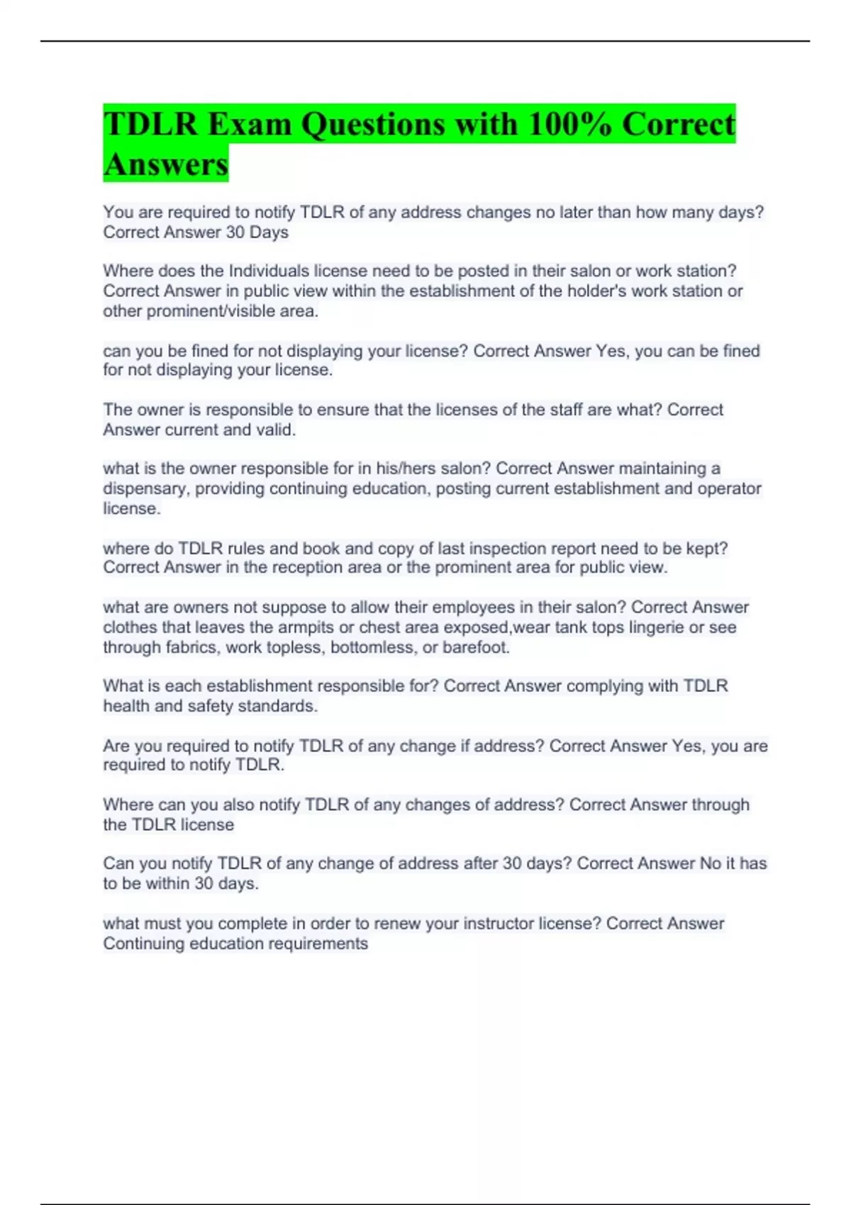 Can you notify TDLR of any change of address after 30 days? Correct Answer No it has