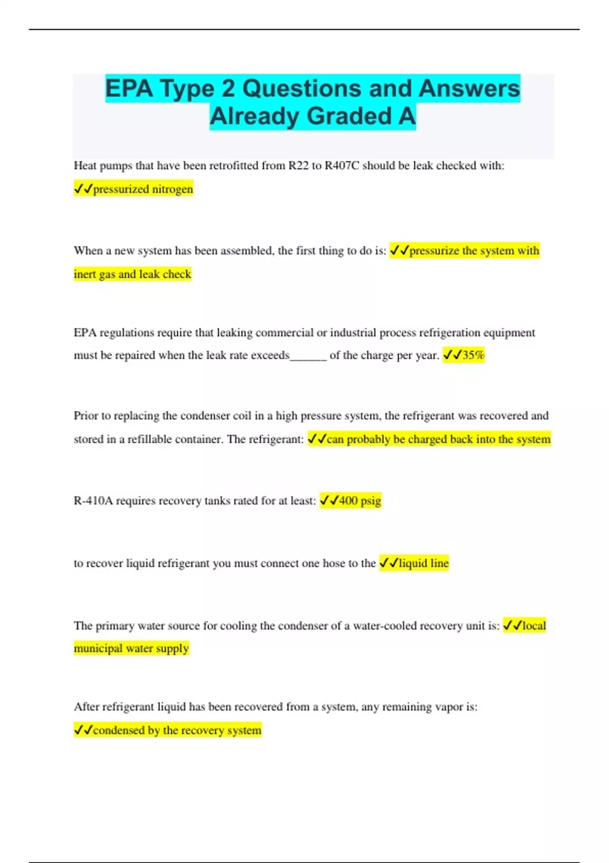 EPA Type 2 Questions and Answers Already Graded A