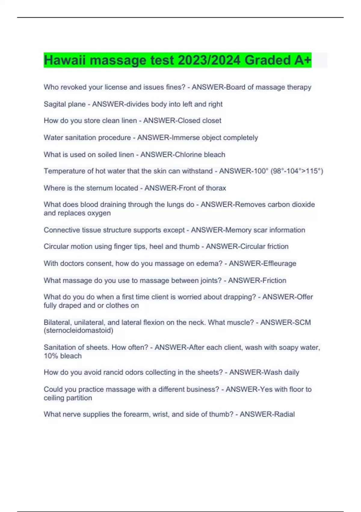 Hawaii massage test 2023/2024 Graded A+