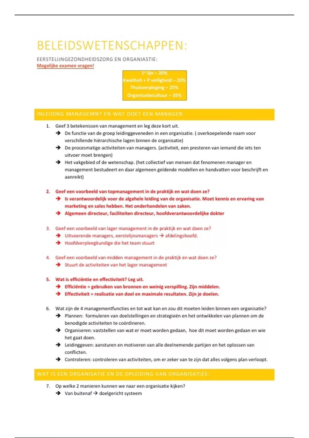 1. Geef 3 betekenissen van management en leg deze kort uit.