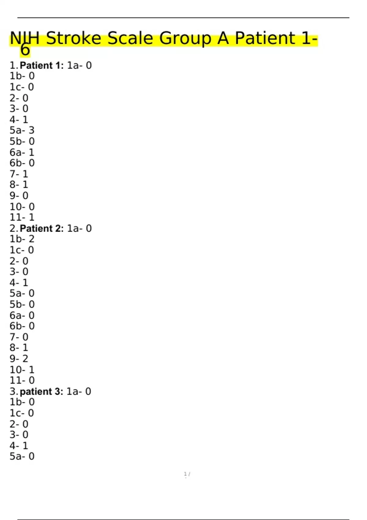 NIH Stroke Scale Group A Patient 1-6 2023 Exam Complete 100%