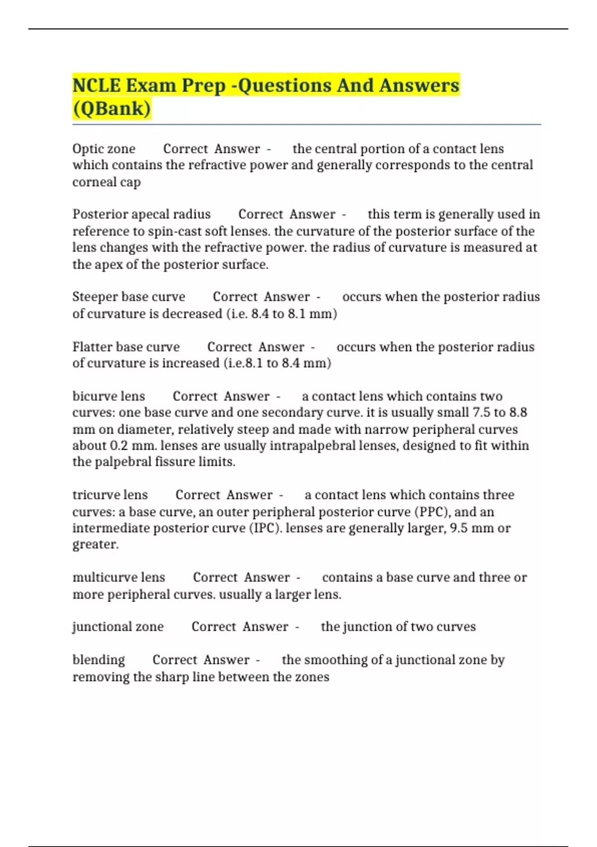 NCLE Exam Prep -Questions And Answers (QBank)